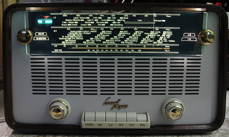 Die Sache hat einen kleinen Haken! Die EM 87 schließt die Leuchtbalken schon bei - 15 V, die EM 84 bei erst ca. - 22 V. Die Steuerspannungen in einem EM 84 Radio sind dementsprechend. Das würde bedeuten das mittelstarke Sender den Leuchtbalken der EM 87 schon schließen und starke Sender nicht mehr zu Identifizieren sind, bei UKW könnte das noch schlimmer sein. Das heißt das die neg. Steuerspannung der EM 84 an die der EM 87 angepasst werden muss, oder korrekt die Balkenlänge. Die eine wäre ein Spannungsteiler der neg. Steuerspannung. Nachteilig dabei ist das dadurch die hochohmigen Spannungsteiler der ALR beeinflusst werden, zumindest auf AM könnte das sich negativ auswirken. Die andere Möglichkeit wäre eine Verminderung des 100 k Steuertrioden R. Also mit 82 K oder 68 K Versuche machen, oder einen Trimmer zu nehmen. Je größer der Trioden R desto empfindlicher ist das Band, allerdings verengt sich auch die Aussteuerlänge, wird der R kleiner braucht man für die gleiche Balkenlänge ein größere neg. Spannung.