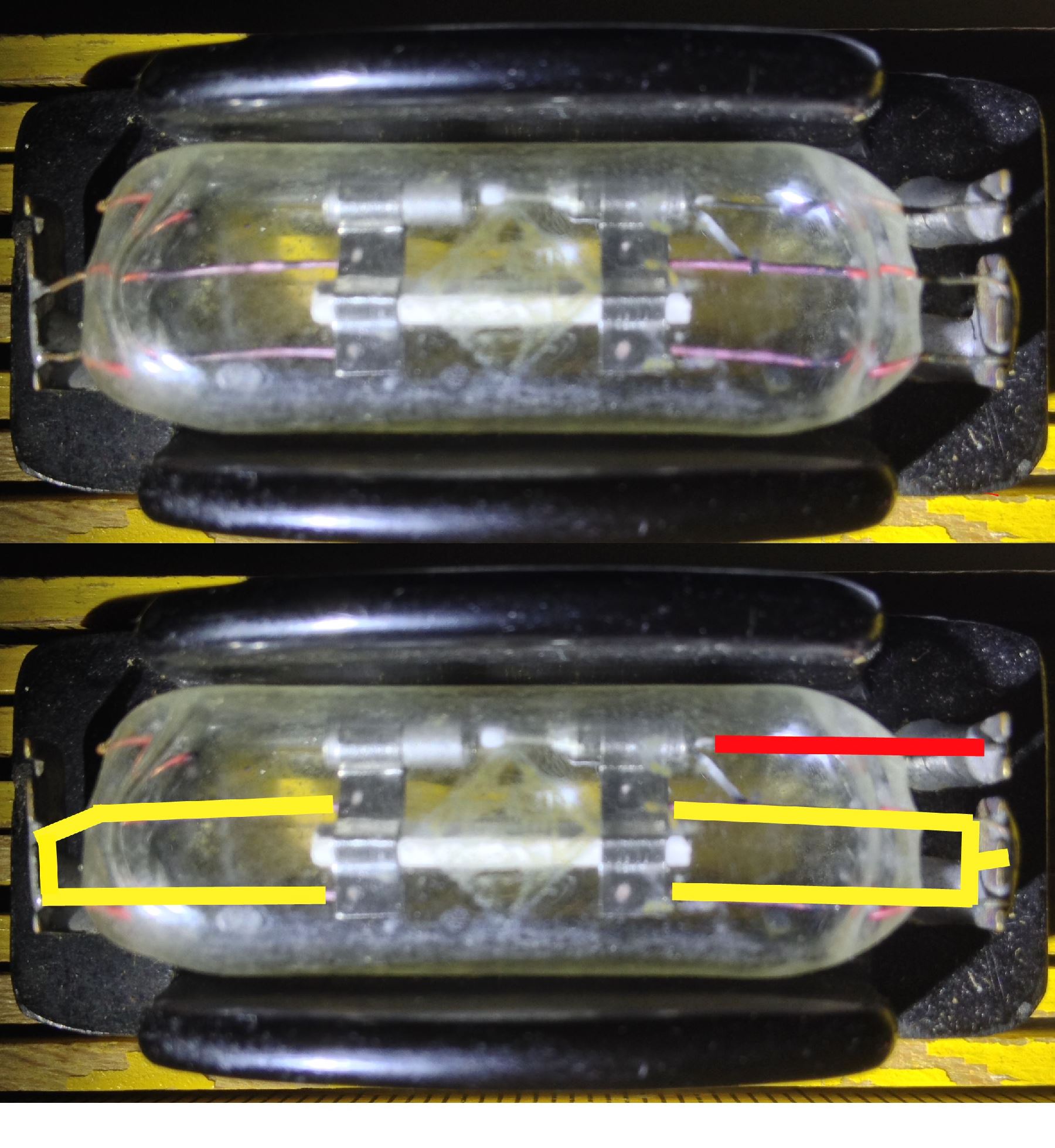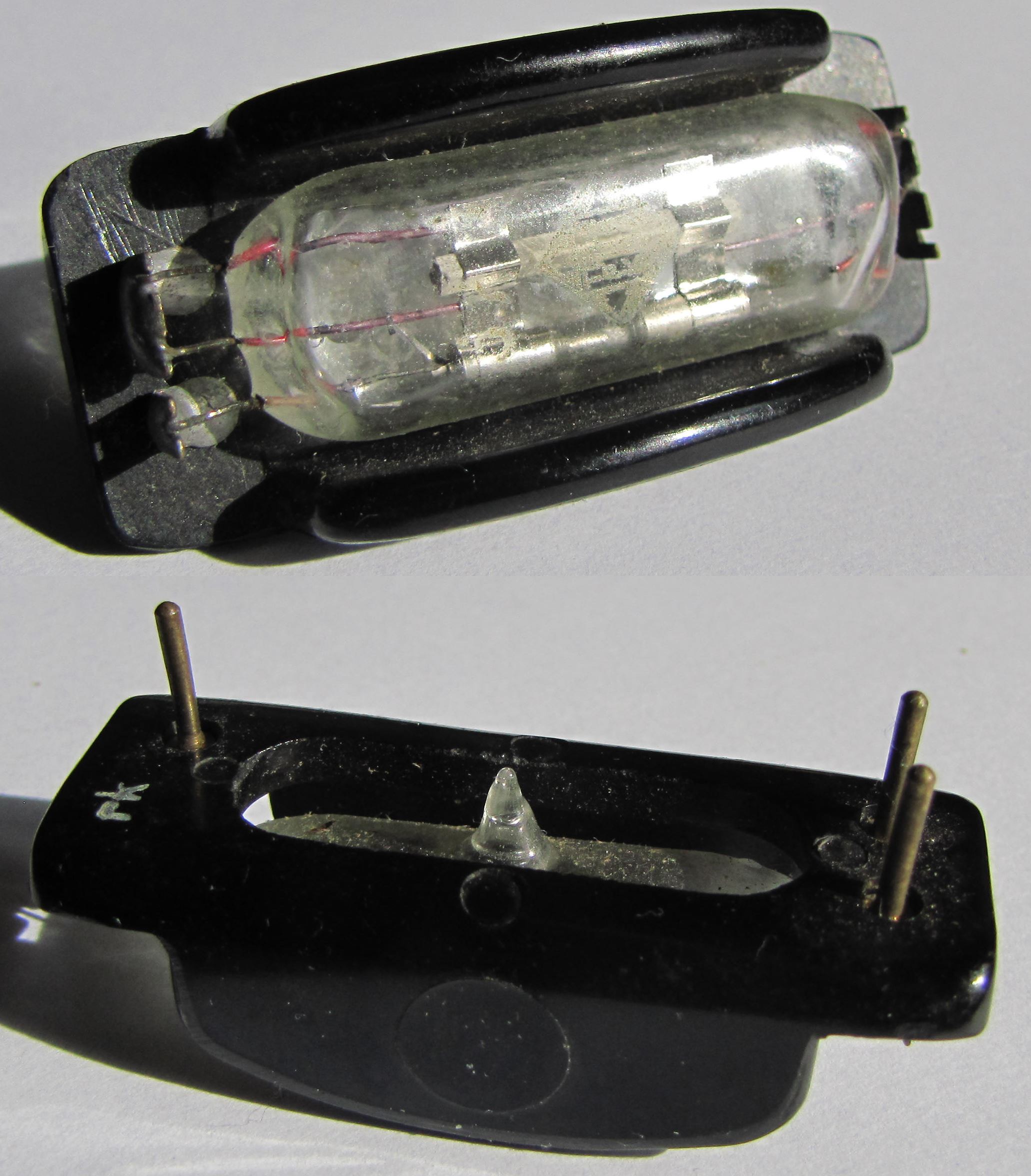 das ist eine Messdiode SA1 (Behördenröhre). Die gibt es auch als Doppelausführung (2 Röhrchen in einem gemeinsamen Bakelitträger).