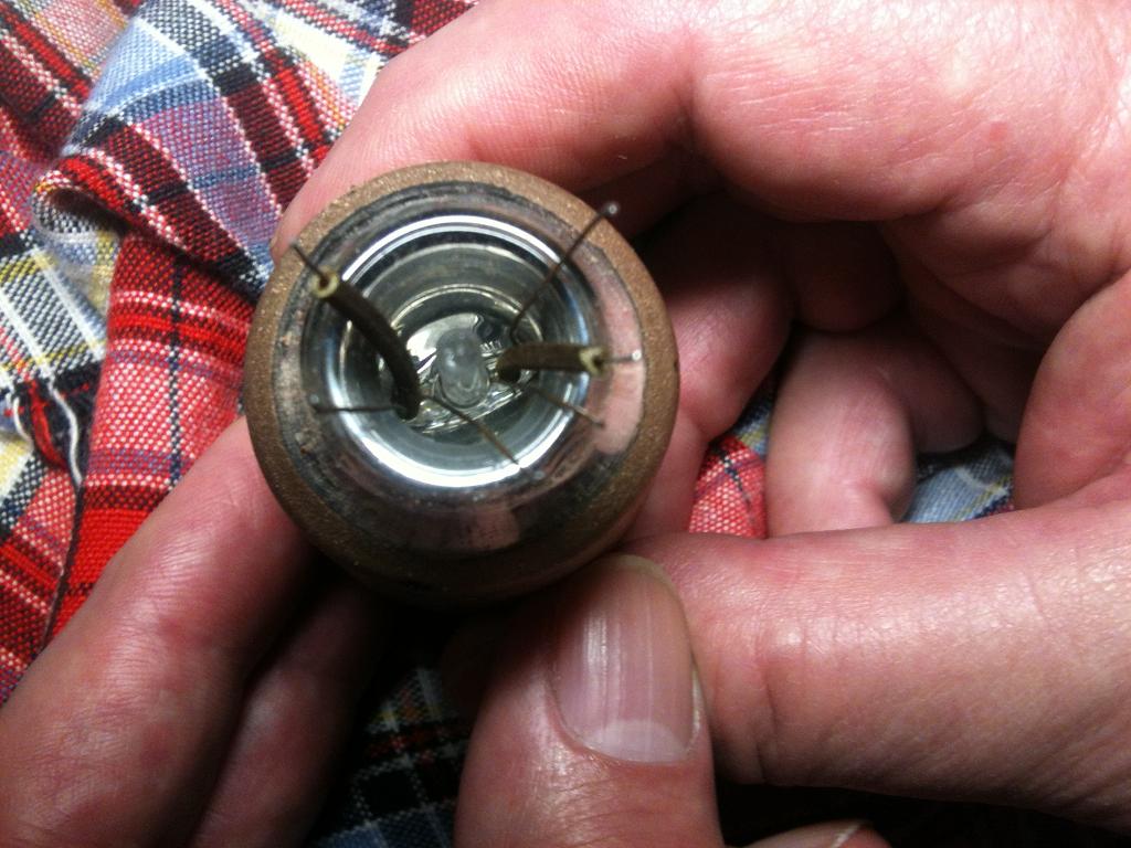 So sieht das wirklich aus. Ich habe heute noch eine "entsockelt" Diese Reihenfolge entspricht dem Sockel. Auf jeder Seite des Zapfens kommen 3 Drähte raus. Bei der "unbekannten" sind überdies keine Isolationsschläuche drauf und die Drähte sind leicht verschoben gegenüber dieser hier.