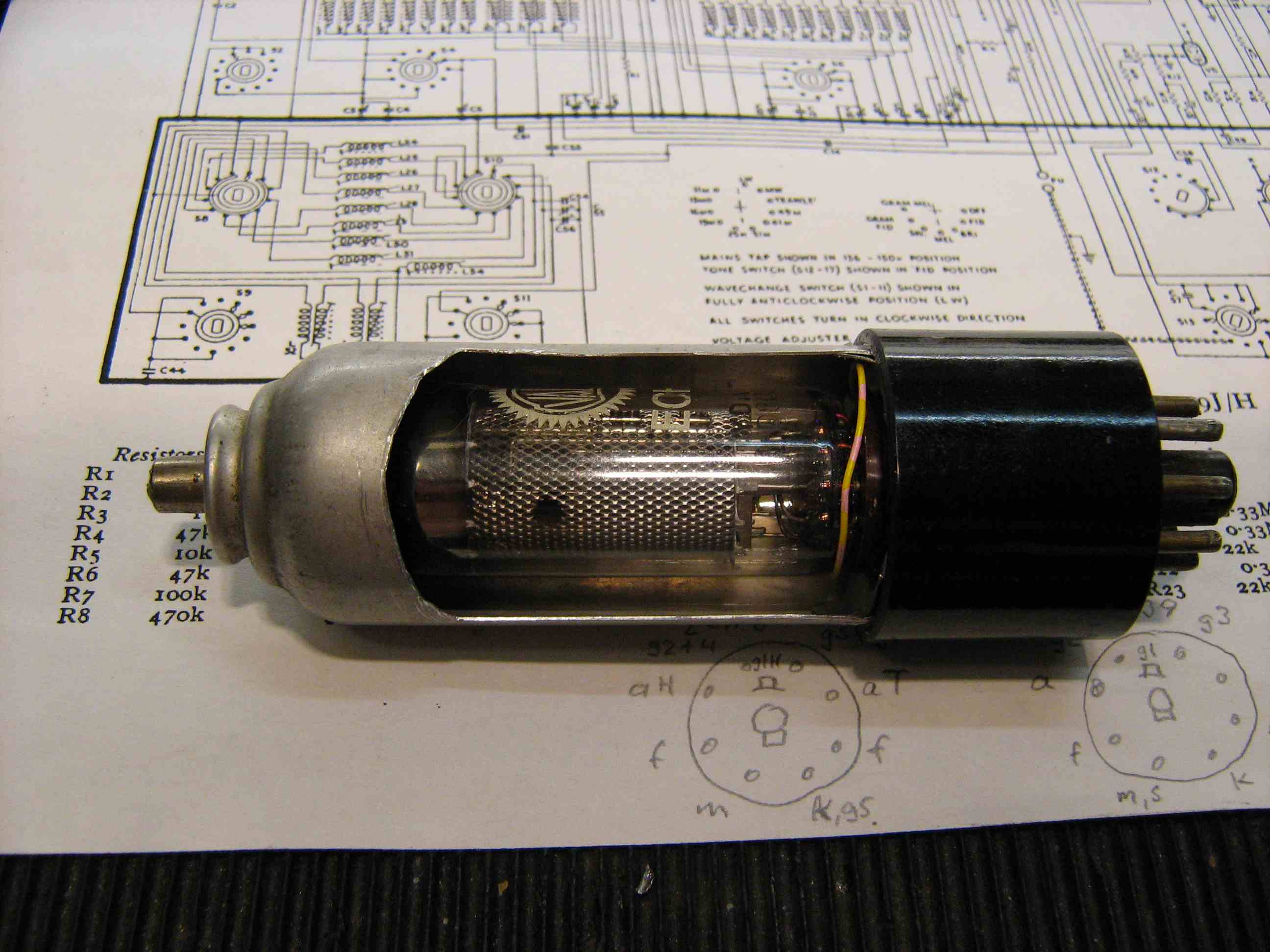 In Ermangelung einer ECH35 (=6E8) für die Reparatur eines PYE Model 39 J/H, fertigte ich eine Adapterfassung mit einer auf dem RPG schon grenzwertigen ECH81 an. Getreu dem Motto: Mehr, als ganz kaputt gehen kann sie ja nicht. Diese adaptierte ECH81 zeigte sich dann auf dem RPG als durchaus gute ECH35, was der anschließende Betriebstest im Radio vollends bestätigte. Nun vergleicht einmal bitte die (Grenz-)Daten der beiden Röhren...