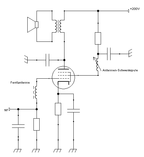 Wenn das nicht funktioniert, kann ich es lassen und die Schaltung mit der Auskopplung der HF am Schirmgitter testen. Aber auch da müßte ich sicherlich neutralisieren (dann hätte ich allerdings den hohen Eingangswiderstand des Steuergitters, die Eigenresonanz der (nicht mehr ganz so) aperiodischen Ferritantenne und die Kapazität vom Schirmgitter zum Steuergitter zu betrachten).