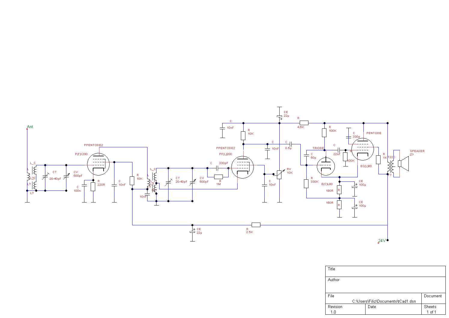 die Verbundröhre PFL200 erscheint für mich sehr interessant für einen empfindlichen Einröhren-Empfänger für MW in klassischer Schaltung. Um genügend Empfindlichkeit für eine Ferritantenne zu haben und um den normalen Schwenkspulensatz eines 1935er Telefunken Einkreisers zu verwenden, möchte ich das L-System zusätzlich als aperiodischen HF-Verstärker verwenden.