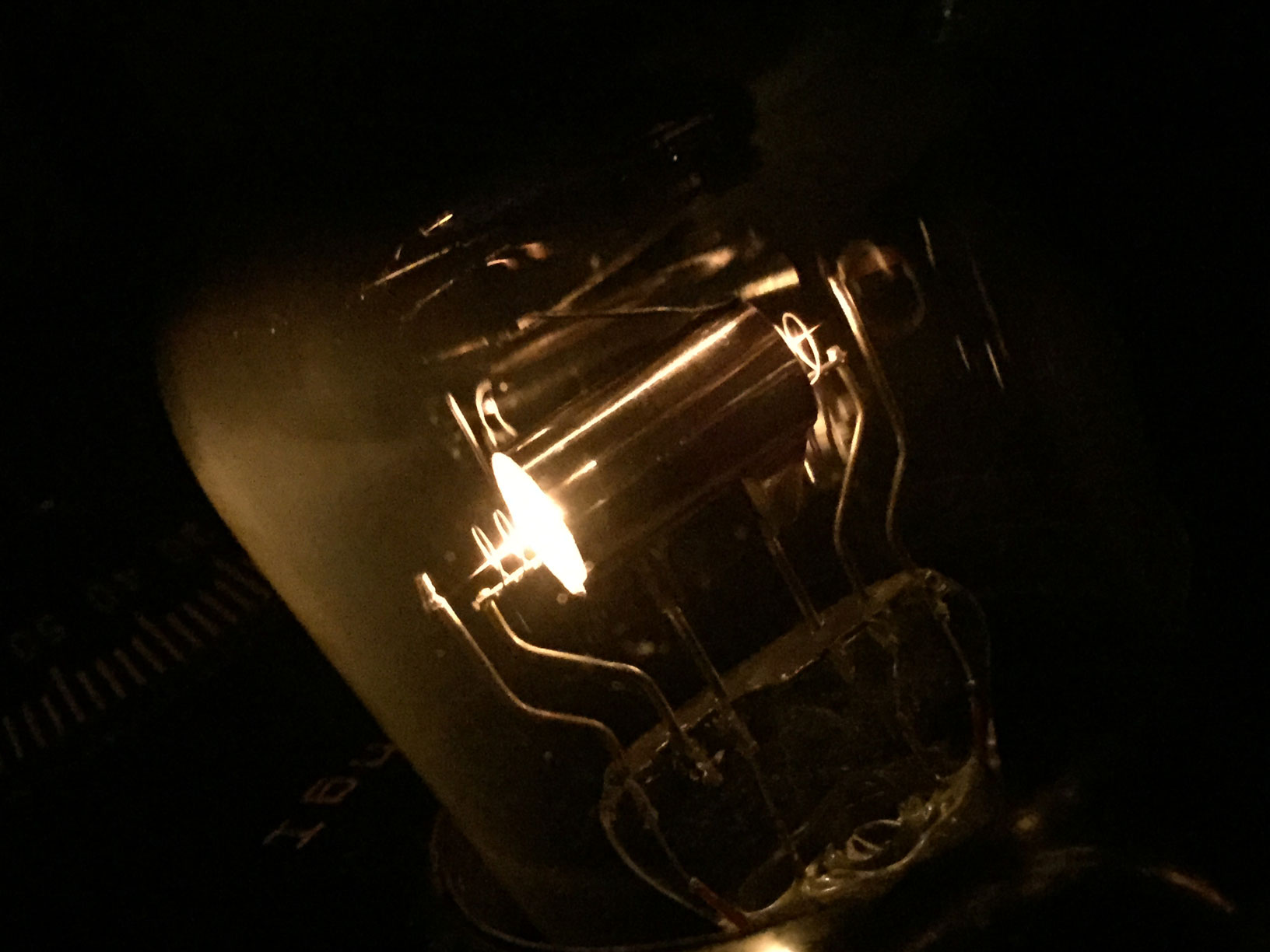 anläßlich einer Fotosession mit meinem AEG Bg, den ich in der Bildergalerie vorgestellt habe, sind mir noch ein paar nette Fotos von einer RE064t im Betrieb gelungen, die ich hier gerne vorstellen möchte (die finde ich nämlich wirklich stimmungsvoll und einfach schön !). Man sieht sehr schön den Systemaufbau und den hell glühenden Thorium-Faden.