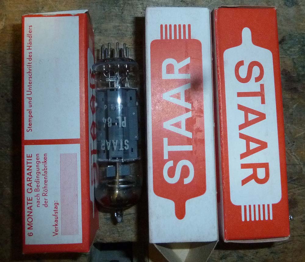 wer kennt die "Staar"-Röhren? Habe hier zufällig ein paar PL84 als "Beifang" ergattert. Beschriftung ist alles Dautsch, und es werden 6 Monate Garantie geboten, somit stammen die Röhren wohl von einem Qualitäts-Hersteller, sie machen optisch auch einen guten Eindruck.