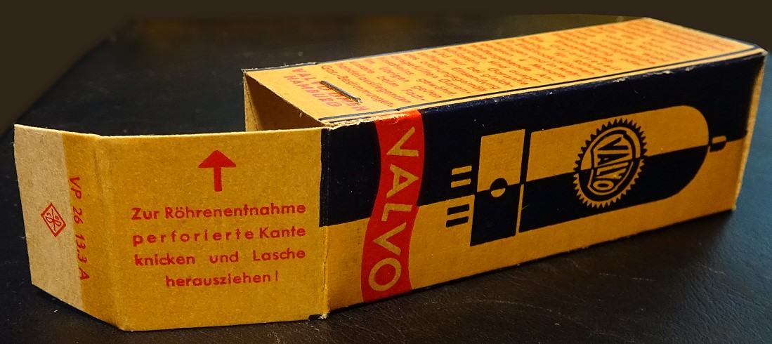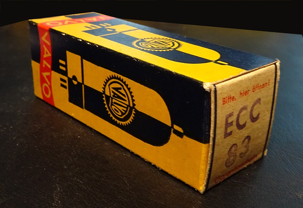 Rainers ECC83 ist ja schon richtig alt! Das Kartonmaterial (grobfaserig und stärkere Vergilbung durch höheren Säureanteil) und Design von Valvo als Schriftzug und Farben - schätz mal Mitte oder späte 50er Jahre. Mich würde nicht wundern, wenn das noch eine Glastellerboden "Münze" Röhre ist! Öffnen würde ich sie auch nicht.
