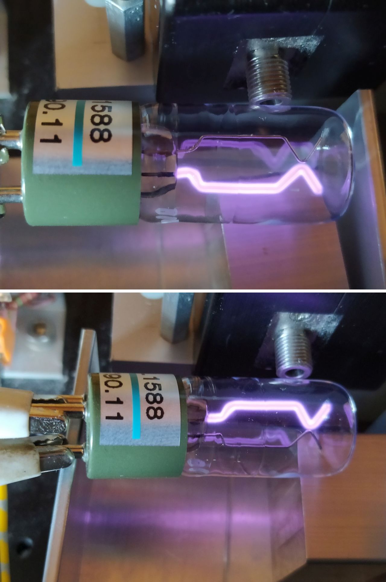 Übrigens, die Lampe (L1588) zeigt hier ein ganz anderes Verhalten. Je nach Polarität leuchtet hier eine andere Elektrode.