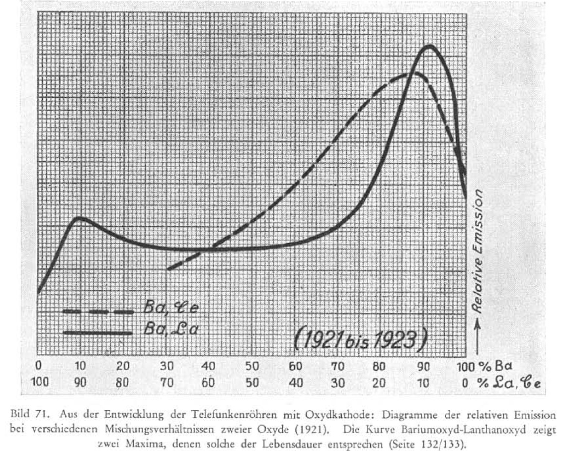 Thorium und Oxyd. Die Beschichtung von Oxydkathoden (Dunkelglüher) war ein Thema