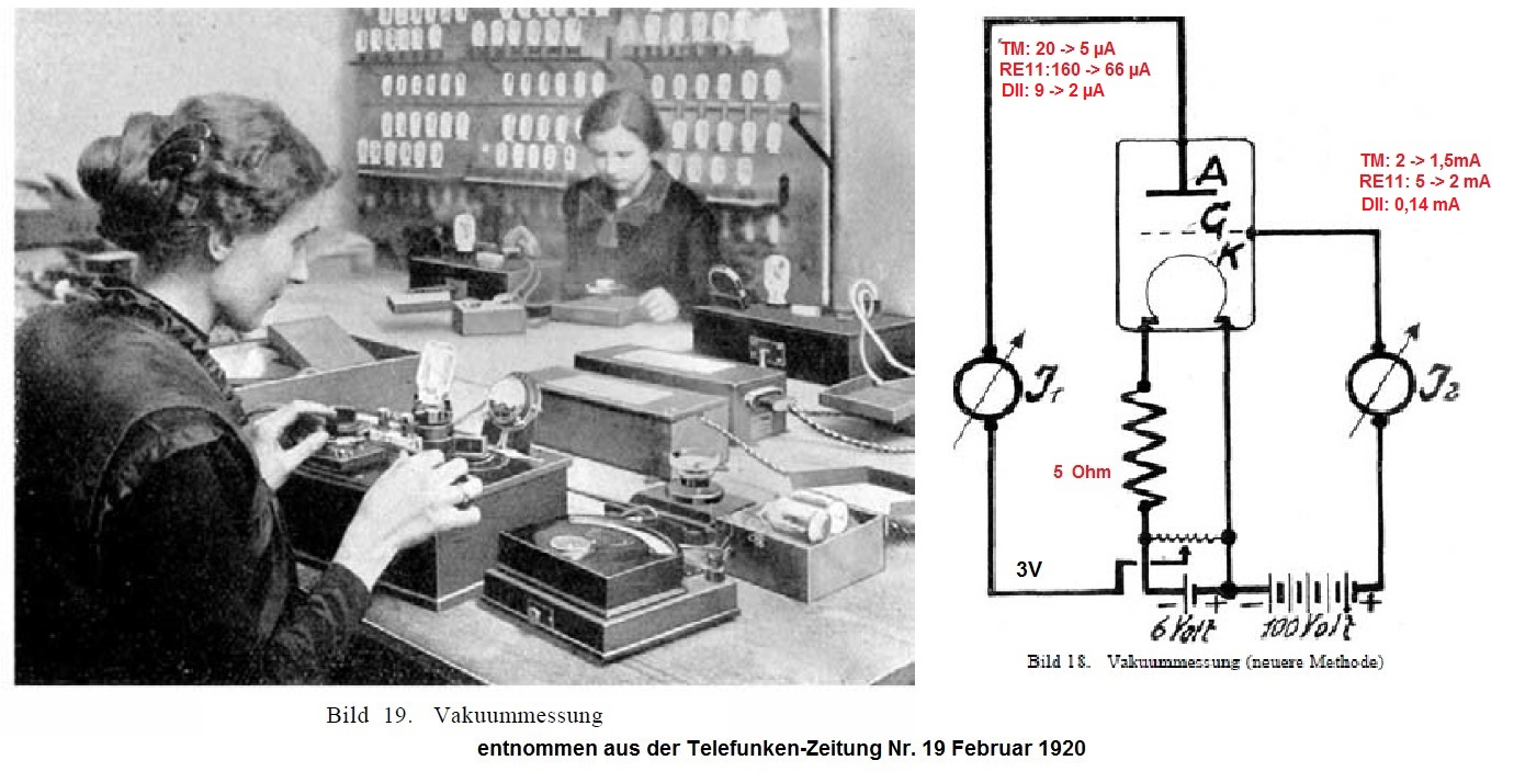 Nach Vorlage der Telefunken-Zeitung Nr. 19 wurden Vakuummessungen gemacht: