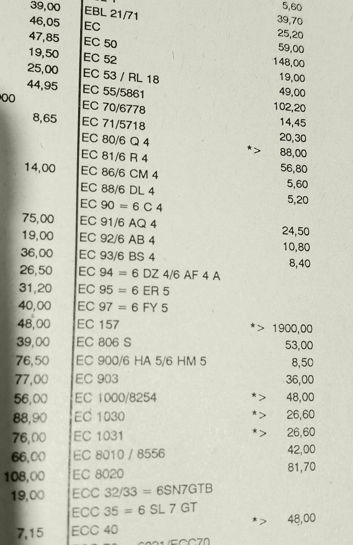 ich hab ihn gefunden - meinen Schuricht Katalog von 1992. So, der Preis war damals 81,70 DM o.Mwst. Mehrwertsteuer war damals noch 14% = 11,43 DM. Bruttopreis also 93,13 DM das Stück!. *> bedeutet Hersteller Auslauftyp. Damit ist wohl gemeint das Schuricht die nicht mehr beim Vertrieb der Hersteller beziehen kann.