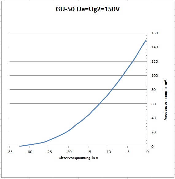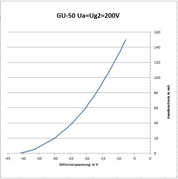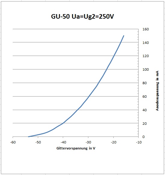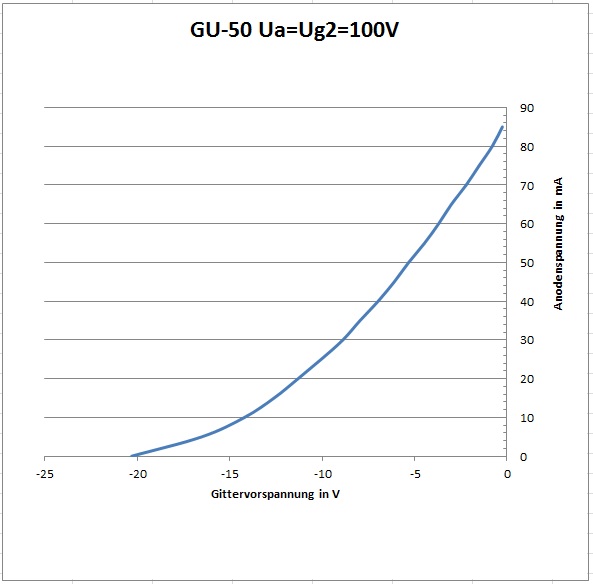 Ohne Gittervorspannung zog die Röhre übrigens noch bei 50 Volt Anodenspannung 35 mA Strom.