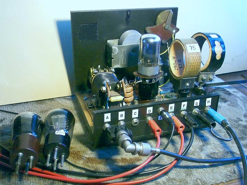Zum Schluss ist eine Erprobung der Idee wichtig. Dazu dient ein einfaches Audion mit Gittergleichrichtung und Rückkopplung. Die NF wird mit einem 1:4 Trafo ausgekoppelt. Überraschenderweise ist die Ausgangslautstärke zwei bis dreimal größer im Vergleich zur Originalröhre......