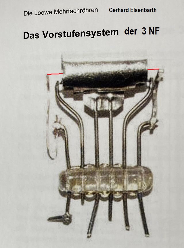 die Loewe Mehrfachröhren waren keine Hellglüher aus reinem Wolfram mehr, sondern trugen bereits eine Barium(oxyd)kathode. Eine Dimensionierung auf geringe Emissions- ströme machte keinen Sinn und fand auch nicht statt. Die technologische Herausforderung war hingegen die zeitlich gleichmässige Beschichtung im Aufdampfverfahren für alle Röhrensysteme. Weiterhin konnte die Anodenverlustleistung durch Anodenoptimierung deutlich gesteigert werden: Von 2W der 3NF bis auf über 35W der 3NF K/L.