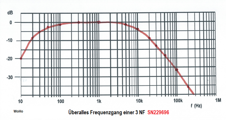 Auch hier wurde sehr hochohmig konstruiert, es gibt da einige Streitartikel, in denen das prinzpell heftig angegriffen wurde ("Forstmann-Ardenne-Disput" über mehrere Hefte). Die eingestellte Messung der 3NF zeigt aber, dass diese Vorwürfe ungerechtfertigt waren: Offensichtlich sind weder die Koppel-Kapazitäten zu klein gewählt noch tritt ein zu großer Höhen-Verlust auf.