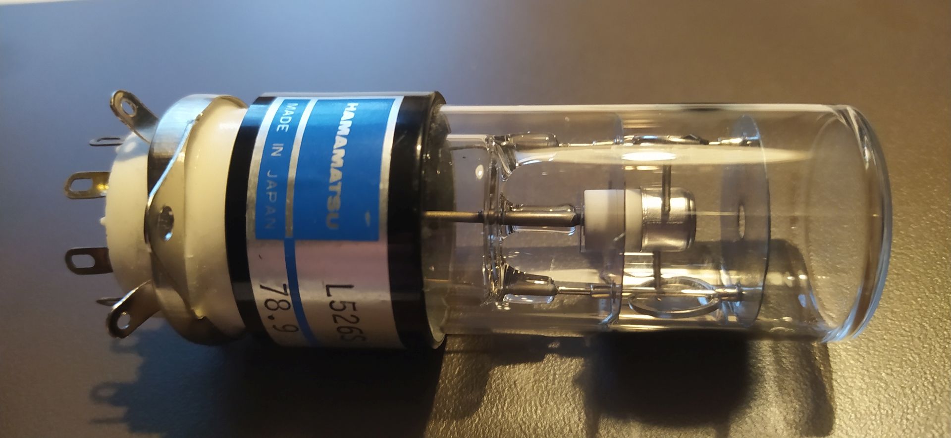 Wenn die Lampe mindestens 3 Anschlüsse hat, dann kann es sich um eine Deuteriumlampe handeln. Diese Lampen werden wie Leuchtstoffröhren betrieben, mit dem Unterschies, dass meistens noch eine 'kleine Haltespannung' für den Betrieb benötigt wird, damit der Druck in der Lampe gehalten wird. Manche Lampen brauchen das nicht, weil sie sich durch die selbst erzeugte Betriebstemperatur, den Arbeitspunkt stabilisieren. !!!Deuteriumlampen werden sehr heiss!!! Die Deuteriumlampen, die ich verwende, haben eine Zündspannung von ca.350V (bei Raumtemperatr). Bei älteren Lampen kann die Spannung bis an die 500V ansteigen. Die Brennspannung liegt bei ca. 80-90V. Hier ist ein Katalog solcher Lampen --> h t t p s://www.hamamatsu.com/content/dam/hamamatsu-photonics/sites/documents/99_SALES_LIBRARY/etd/D2lamps_TLS1017E.pdf
