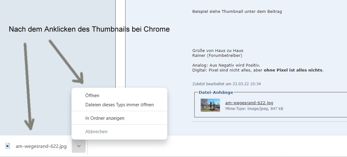 seit kurzer Zeit werden (bei Windows 11) in den Browsern Firefox und Edge die ins Forum hochgeladenen Fotos durch Anklicken der kleinen Thumbnails unter dem Forumbeitrag anders behandelt.