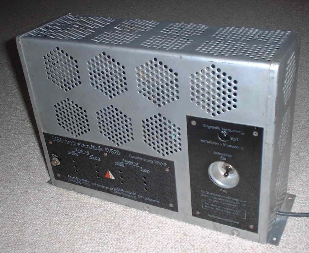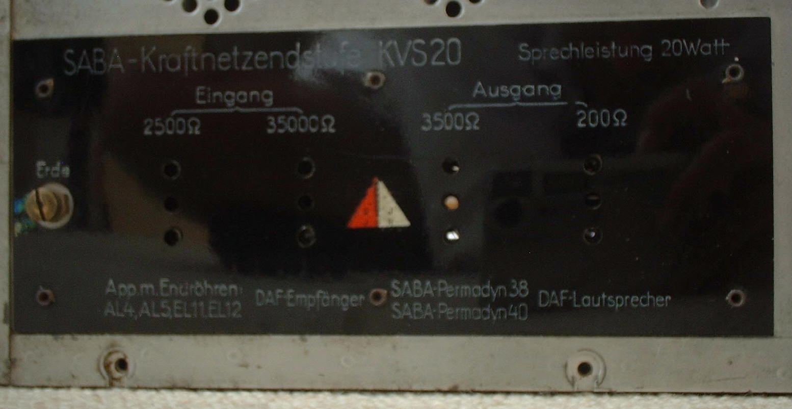 ....damit das ein Foto-Thread bleibt, hier noch ein paar Bilder meiner (zum DAF gehörigen) Kraftnetzendstufe von Saba mit der Bezeichnung KVS 20 (Bestückung: 2x AL 5 / 325 sowie 1x RGN 2004). Sie verfügt über einen besonders hochohmigen Eingang, extra bemessen auf den hochohmigen Ausgang des DAF 1011 und einen besonderen Ausgang (200 Ohm) für das zum DAF gehörige Lautsprecherchassis !
