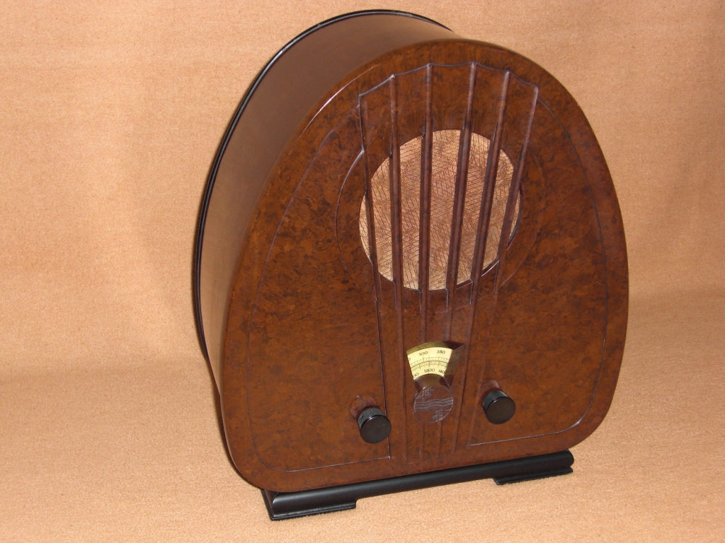 weil sie so hübsch sind, hier noch ein weiteres Gerät dieser Machart (Stahlgerippe /Laminat) Der 834A hat übrigens auch dieses Stahlgerippe. Ich hatte es an der Stelle vergessen zu erwähnen. Mit der Jahresangabe von 1934 habe ich da inzwischen so meine Zweifel. Ich denke das Gerät wurde, genauso wie die anderen dieser Machart, etwas früher gebaut.