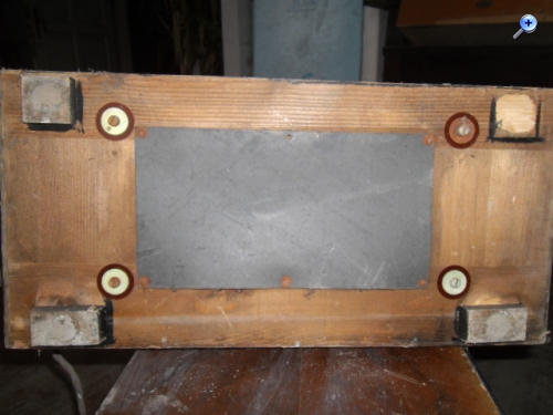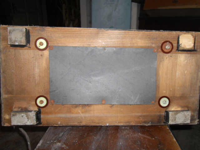 Das Rückwandfoto des DRM zeigt rechts eigentlich hinteinander zwei Achsen die nach draußen gehen. Will sagen: Eigentlich müssten rechts und links jeweils zwei Löcher in der Seitenwand sein. Der Trafo liegt beim DRM-Gerät etwas anders. Die Photos von Pappnase zeigen leider die Seiten des Geräts nicht richtig und er meint auf einer Seite wäre nur ein Knopf.