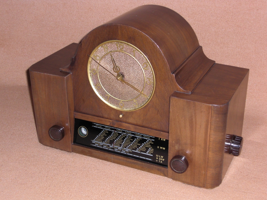 Hallo zusammen, heute geht es weiter mit einem TeKaDe WKZ065. Es handelt sich um einen 6Kreiser mit einer eingebauten Synchronuhr. Wenn man das Gerät so sieht, könnte man meinen, das es schon wesentlich früher gebaut wurde. Es wurde aber erst um 1950 gefertigt. Das Gerät empfängt die Wellenbereiche L, M, K. Auf der Skala ist auch schon ein UKW Bereich aufgedruckt. Das Radio ist aber nur für UKW vorbereitet. Im Inneren gibt es dafür eine Buchse (gleich wie die Röhrenfassung für VY2/AB2). Ob es tatsächlich speziell für diesen Typ einen UKW Zusatz gab, ist mir nicht bekannt. Mir ist jedenfalls noch kein Gerät mit eingebauten UKW Teil begegnet. Das Gerät hat den Röhrensatz ECH42, EAF42, EL41, AZ41, EM34.