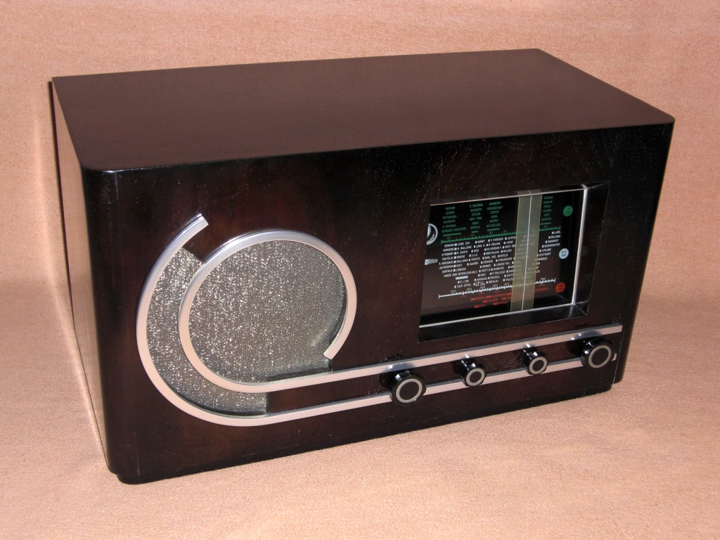 Das Design ist sehr an den berühmten Loewe Schlittschuh 537W angelehnt. Ich denke, man könnte dieses Radio ebenfalls Schlittschuh nennen. Dieses Exportgerät ist ausstattungsmäßig sogar deutlich besser als der 537W. Es hat ein Magisches-Auge (6U5), einen Bandbreitenschalter, einen Vorkreis und eine Stummabstimmung. Insgesamt hat das Gerät 7 Kreise. Es hat die Wellenbereiche L, M und K. Der Röhrensatz ist 6D6, 6A7, 6D6, 75, 6U5, 6V6 und 5Y3.