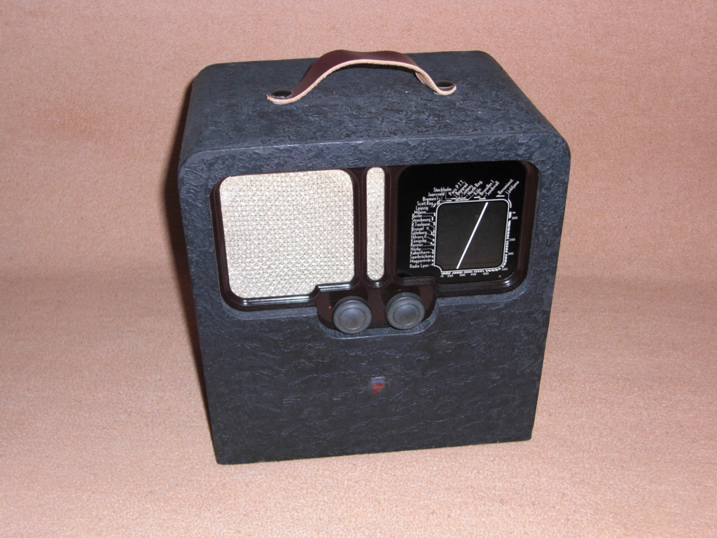 Hallo zusammen, ein neuer Tag im Wumpus Forum ist angefangen, und damit möchte ich euch gleich ein weiteres Radio, aus meiner kleinen Radiosammlung vorstellen. Es handelt sich dieses mal um ein Koffergerät, mit einem ganz eigenwilligem Design. Das Gerät ist der Phlips 122ABC Koffer von ca 1940. Die Bezeichnung ABC ist dabei ein Hinweis, auf die vielfältige Verwendungsmöglichkeit. Neben Batteriebetrieb, ist das Gerät auch an Gleich und Wechselstromnetzen zu betreiben (3 Stromarten).