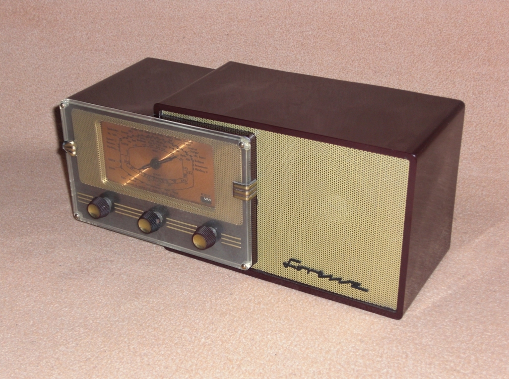 Ich mache in der nächsten Zeit noch Fotos meines Philips Aachen D52 AU. Denn dieses und einige andere Philips-Radios haben durch den Monoknopf=Joystick eine Design-Alleinstellung. Ich finde es erstaunlich, wie Philips die Bedienung von Wellenschalter, Abstimmung grob-fein und die Lautstärke- und Toneinstellung nur mit Schaltern und Bowdenzügen gelöst hat und all dieses mit einem, in allen Richtungen beweglichen, Knopf und einem Rändelring für die Bereichsumschaltung bedient wird.