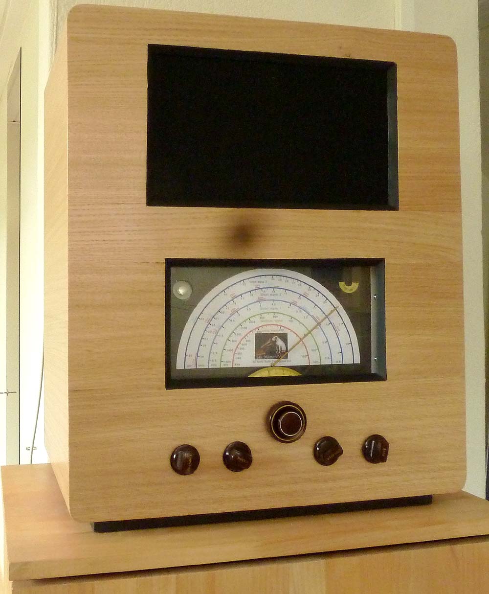 dieser 'His Master's Voice' passt auch gut hierher. Er stammt aus England und hat etwa Jahrgang 1937. Das Gehäuse ist leider nicht original, da es fehlte, ebenso die Stationsskala.