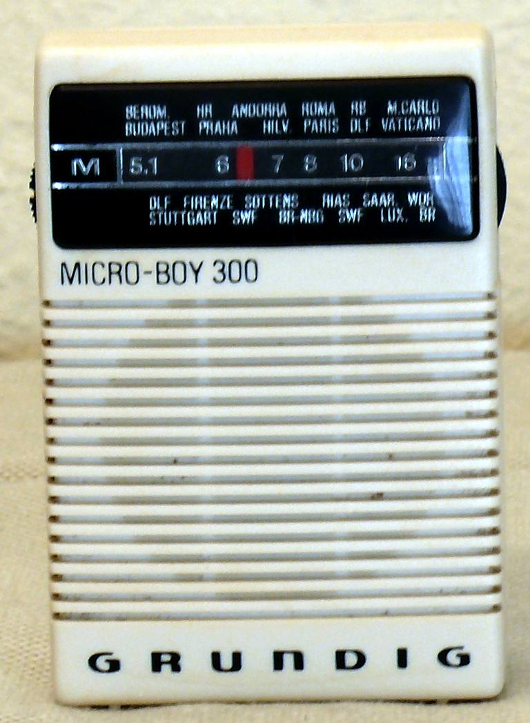 Herst. : Grundig Mod. : Micro-Boy 300 Jahr : 1972 - 1973 Bes. : nur MW, keine anderen Bem. : Batteriespeisung 2 x 1,5 V, Thermoplastgehäuse, Taschenradio,Farben: rot, weiss, schwarz