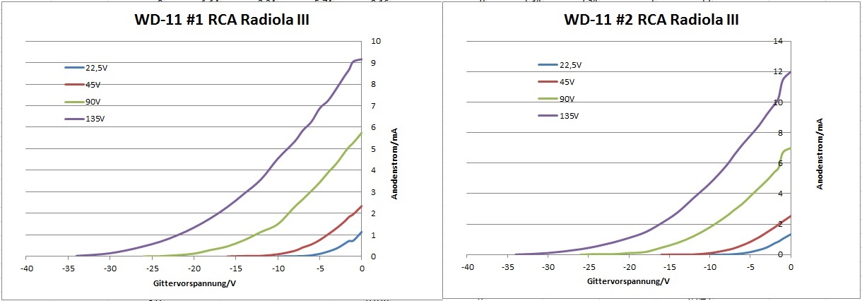 Nachtrag: Die WD-11 war für die damalige Zeit sehr innovativ. Der Heizfaden (1,1V, 250mA) bestand aus einer Platin-Iridium-Legierung und war mit einem Gemisch aus Barium und Strontium beschichtet. Der Betrieb mit Trockenbatterien war beliebt, denn sie kosteten 40 Cent, während Bleisammler bei 10 ... 20 Dollar anzusiedeln waren. Ausserdem konnte auf dem Lande ohnehin niemand die Sammler mangels Elektrifizierung laden. Viele Windräder bei Farmern dienten ausschliesslich der Ladung von Bleiakkus.