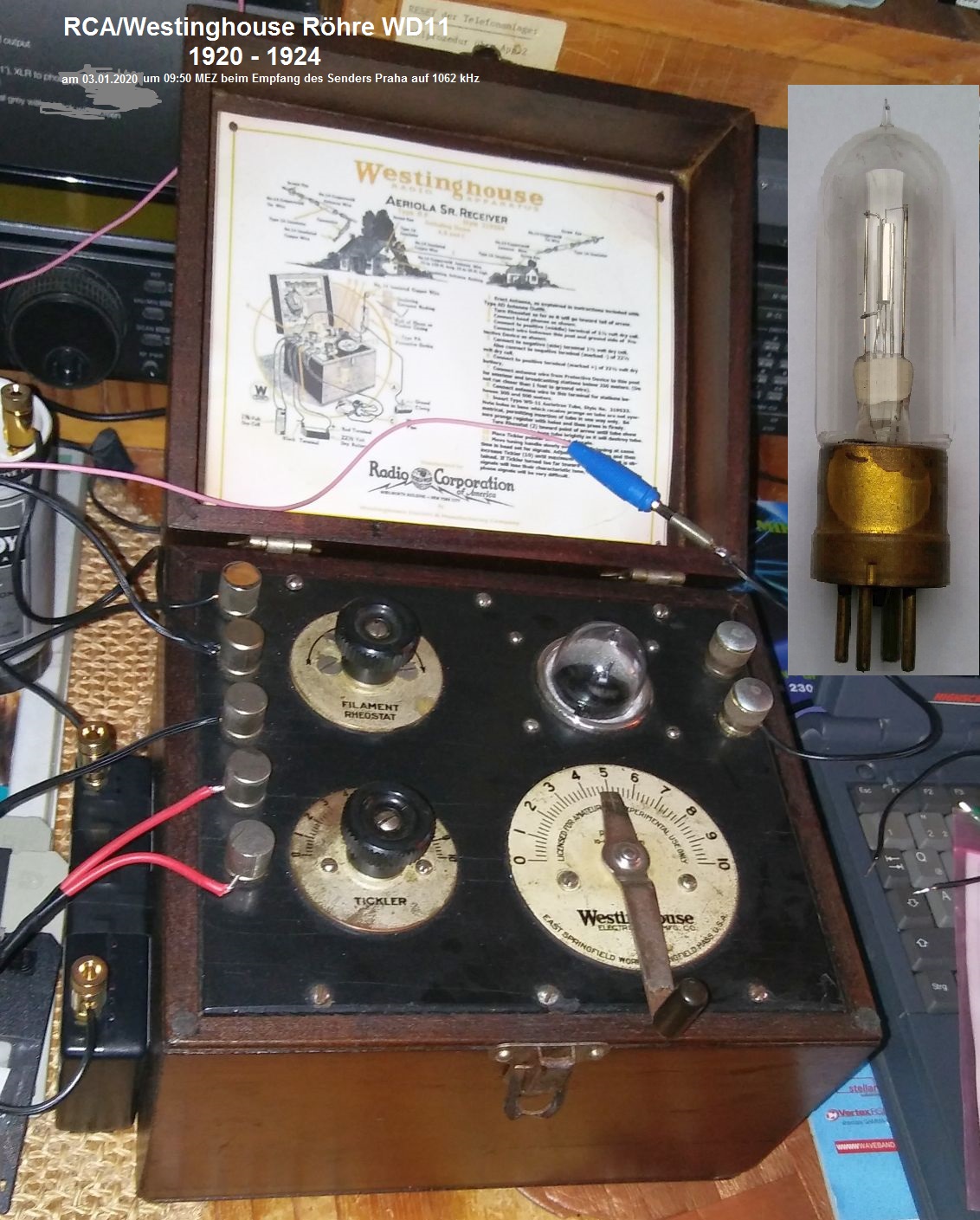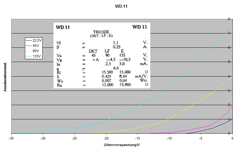 WalterBar:Die WD-11 hat schon eine Oxid-Kathode, und die Rheostat Einstellungsanweisung von Westinghouse bezüglich Dunkelglut ist absurd. Es wundert mich nicht, warum so viele Röhren zwischen 1921 und 1923 verheizt wurden und Westinghouse bzw. der Nachfolger RCA zu einem Umbau auf UV-199 oder ähnliche Trioden riet.