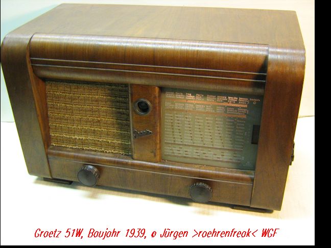Bild 4: Vom gleichen Flohmarkt stammt dieser Graetz 51W, Bj 1939. Damaliger Zustand? Genau so grauenvoll wie der "Siera". Wieder Tränen in den Augen gehabt, ´nen Zehner dafür los geeist, und nach liebevoller Restaurierung stand er wieder da "wie geleckt". Das Besondere: Die Stationsnamen der "Reichssender" sind in gothischer Schrift auf der Grosssichtskala vermerkt, die Auslandssender "nur" in einer Helvetika-Schrift. Mit den Röhren ECH11, EBF11, EL11 und AZ11 ein beachtlich empfangsstarker Superhet, besonders auf der Kurzwelle!