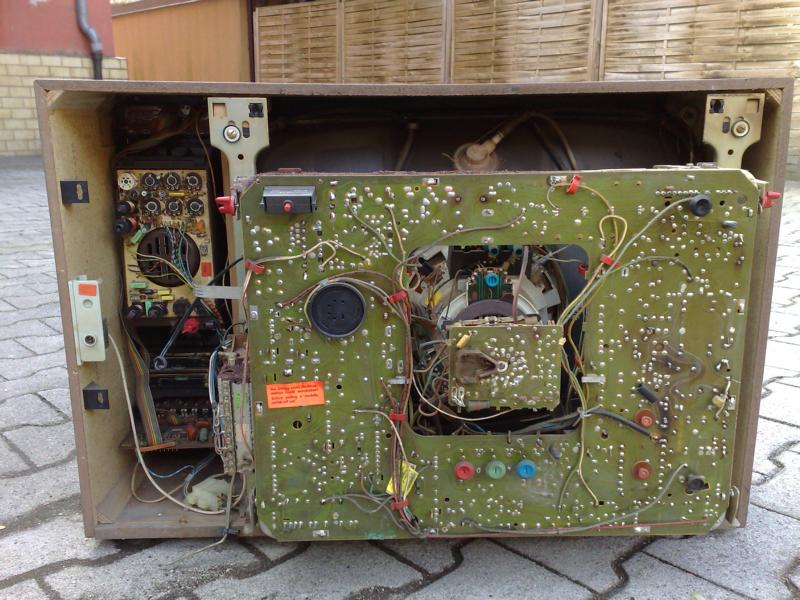Ja,das wäre schon Toll den wieder laufen zu sehen.Würde mich schon sehr reizen!Vorallem weil dieses Modell mich seit frühester Kindheit begleitet hat(großeltern hatten den erst,dann wir),und es ,noch, ein früher Farbfernseher ist. Für mich kämen eh nur 2 Optionen mit dem Apparat in Frage: A: Versuchen ihn wieder,mit eurer und von mir sehr geschätzten Unterstützung,zum laufen zu bekommen. Natürlich wenn,nicht zum täglichen Gebrauch,sondern zum ab und an mal einschalten und dran erfreuen.Und B: Ansonsten ihn an einem anderen Liebhaber weiterzugeben. Naja,mit Fernsehreparaturen hab ich so gut wie null Erfahrung,weiß aber größtenteils wo sich die einzelnen Sektionen wie Netzteil,Hochspannungsteil,Tuner,usw befinden,und wo man besser nichts berühren sollte. Aber ein hartes stück Arbeit wäre es mit Sicherheit für mich!Weil ich geh mal sehr stark davon aus,das es nicht nur mit Kondensatoren tauschen getan ist!Denn die ehemaligen Besitzer stellten nichts weg was noch irgendwie funktioniert hat! Naja,bin mir wie gesagt noch nicht ganz sicher ob ich es tatsächlich wagen soll.Aber wenn doch,könnte mir dann vielleicht jemand mit der fehlenden Kanaleinstellklappe und den 2 Reglerknöpfen aushelfen? Hab früher als Kind/Jugendlicher vom Sperrmüll diese Klappen und auch Knöpfe gesammelt, ist natürlich ärgerlicherweise alles längst übern Jordan!