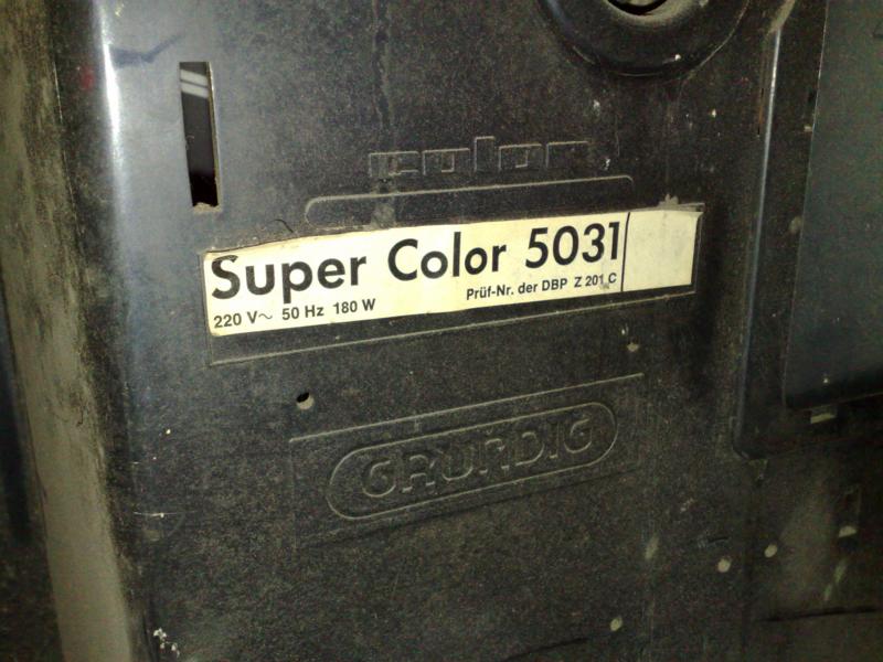 Wollte hier ein Kellerfund aus eigenen Kellerräumen zeigen... Ein Grundig Super Color 5031,Baujahr laut Aufdruck auf einigen Kondensatoren ca. 1973/74. Genau dieses Modell besaßen mal meine Großeltern bis in die 80er,dann hatten wir ihn zuletzt (meine mutter und ich) für 1-2 Jahre bis er hin war.Das war ca 1985/86. Ich wusste zwar schon länger von seiner "identität",aber hab ihn erst gestern aus seinem langjährigen "Verlies" borgen können und heute aufm Hof mit Pressluft ausgeblasen. Soweit wie ich sehen konnte ist er vollständig. Nur ist die Netzschnur abgeschnitten,Kanal einstell Klappe und zwei Reglerknöpfe fehlen vorn. Das Teil stand mit Sicherheit weit über 10 Jahre im Keller! Der Zustand ist entsprechend: Etwas dreckig,verstaubt und hat schon etwas Rost angesetzt. Netzschnur abgeschnitten. Bildröhre scheinbar noch ok,noch keine Luft gezogen,alles heil.