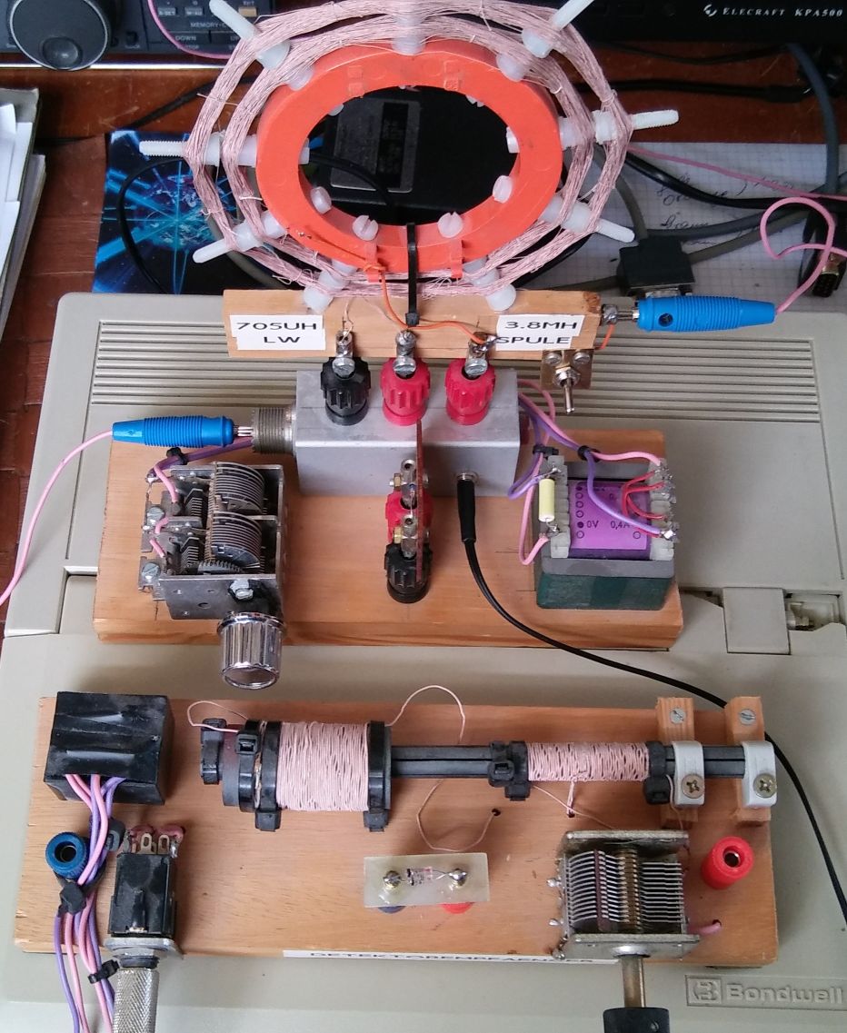 meine beiden "fliegenden Aufbauten" eines Mittelwellen- und Langwellendetektors habe ich nun in eine billige Holzkiste gepackt. Nachdem heute morgen 07:00 Uhr der Empfang des Senders Barcelona auf 738 kHz (100kW) gelang, wird die Kiste, die nach dem Vorbild Aeriola Junior gehalten ist, bis zur nächsten Wintersaison in die Ecke gestellt.