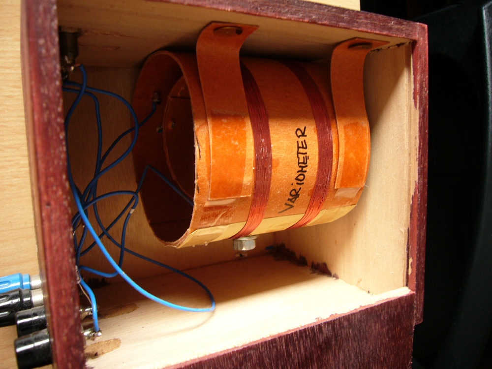 Die Abstimmung erfolgt über ein Variometer (180 Grad drehbar), wobei die Abstimmspule mit dem kleinen Drehschalter auf der linken Seite verändert und daher auch für längere Wellenlängen verwendbar gemacht werden kann.