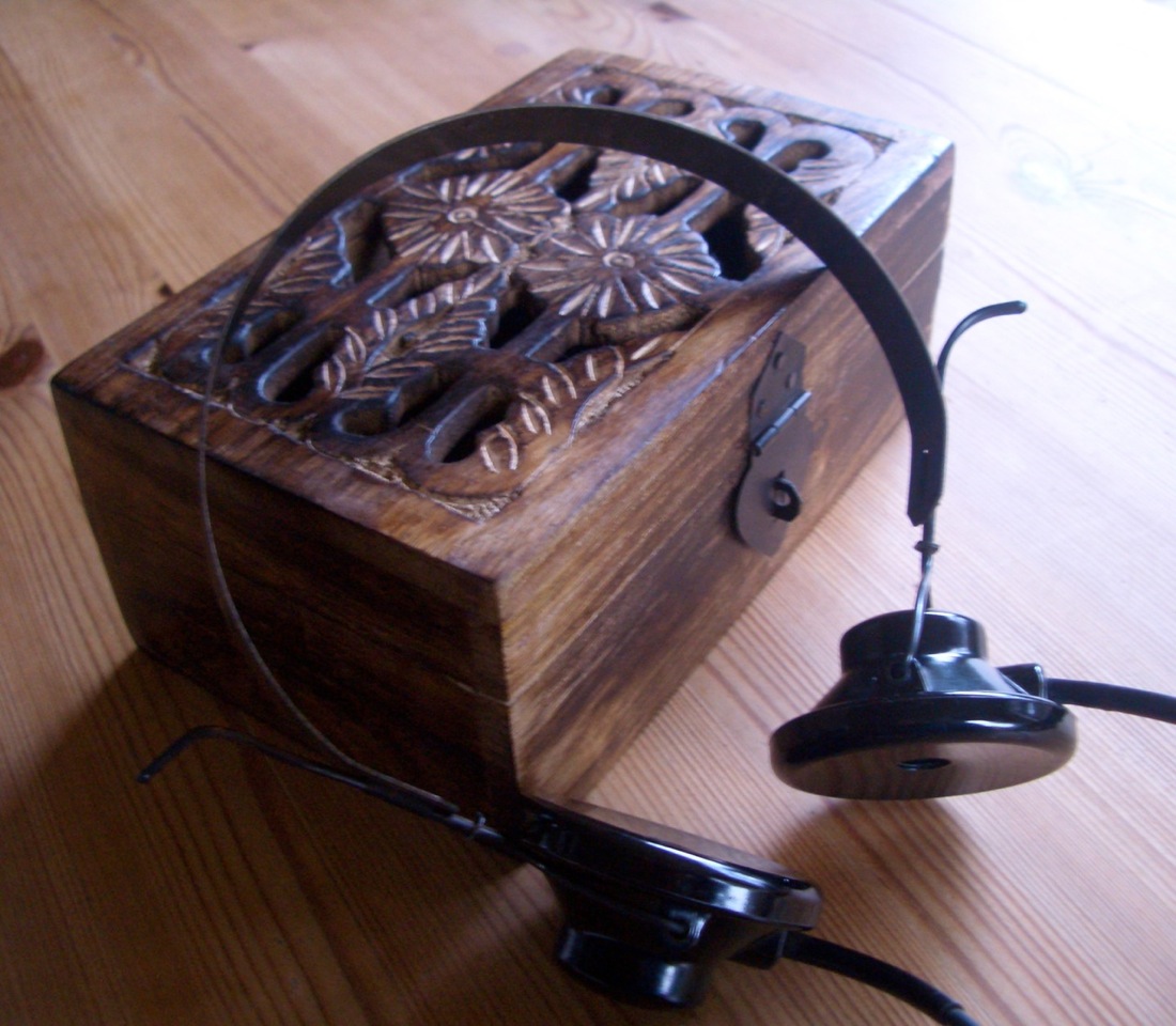 Hier mein neuer Reisedetektor, inspiriert von Joe hier aus dem Forum! Das Ding hat je eine direkte und eine induktiv gekoppelte MW und KW, herrliches Spielzeug! Die Antennenspule sitzt auf einem Schwenkarm aus Plexiglas, mit dem sich der Abstand verstellen läßt. Bei Endposition kann man den Ferritstab durch beide Spulen stecken. Nachts sehr viele Sender, hab noch nicht gezählt. Neuerdings wird Fußball auf englisch gehört.....