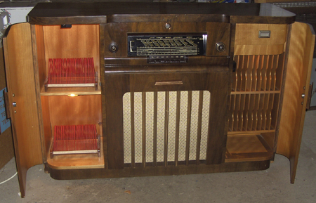 Der Schrank ist das Modell, welches auch als Meistersinger und Schaljapin bekannt ist. Der Meistersinger enthält das Radio, welches Du genannt hast und ein MTG22b. Der Schaljapin ist wie mein vorgestellter Schrank, aber auch mit MTG22b.