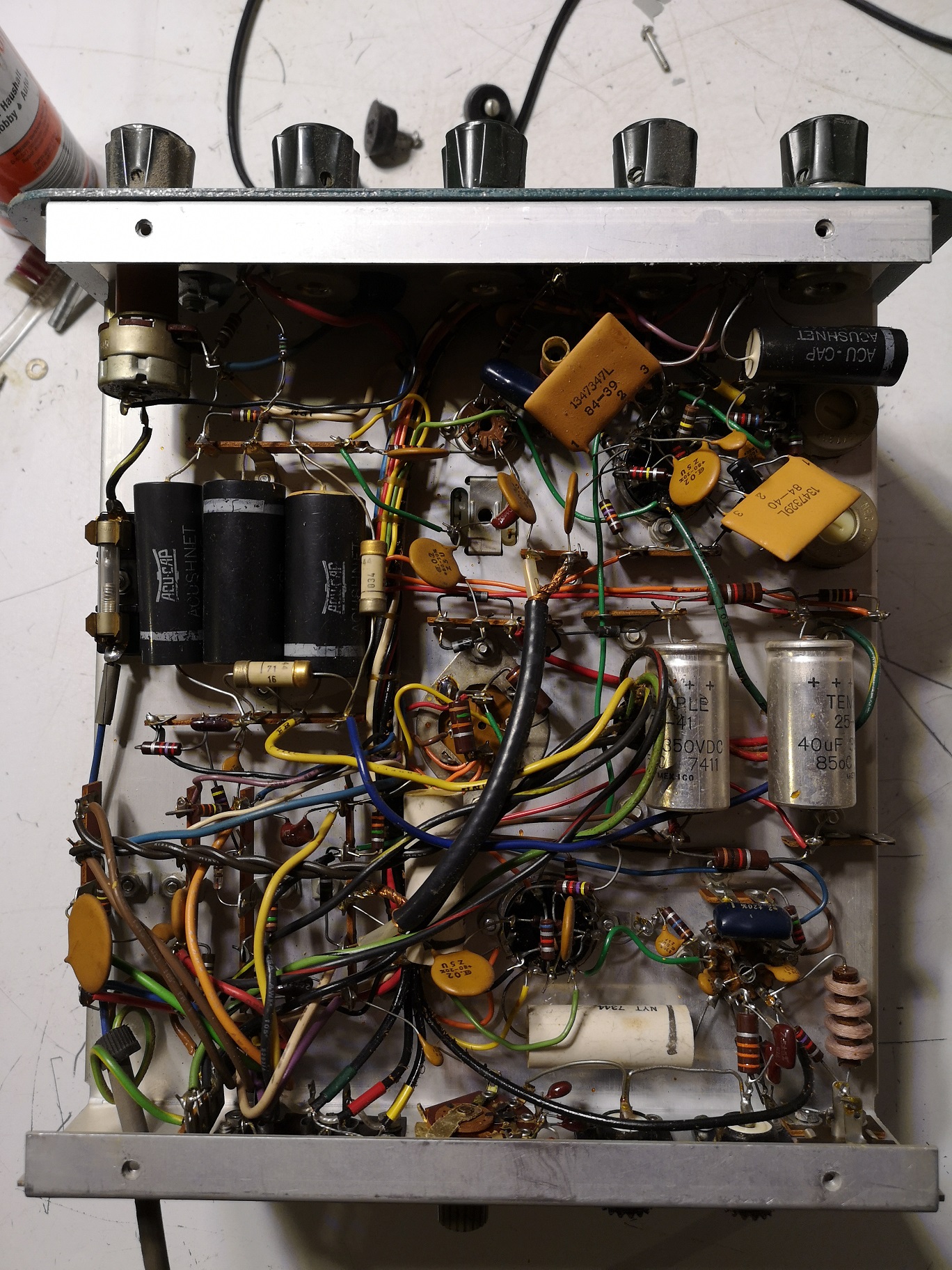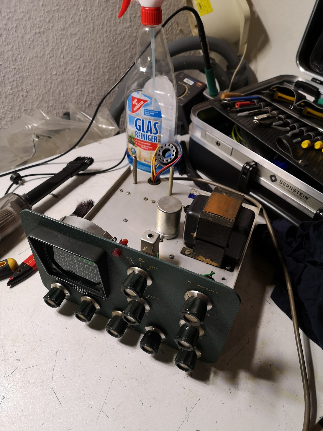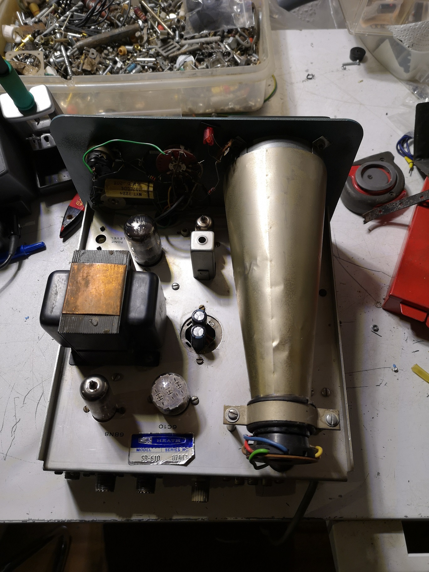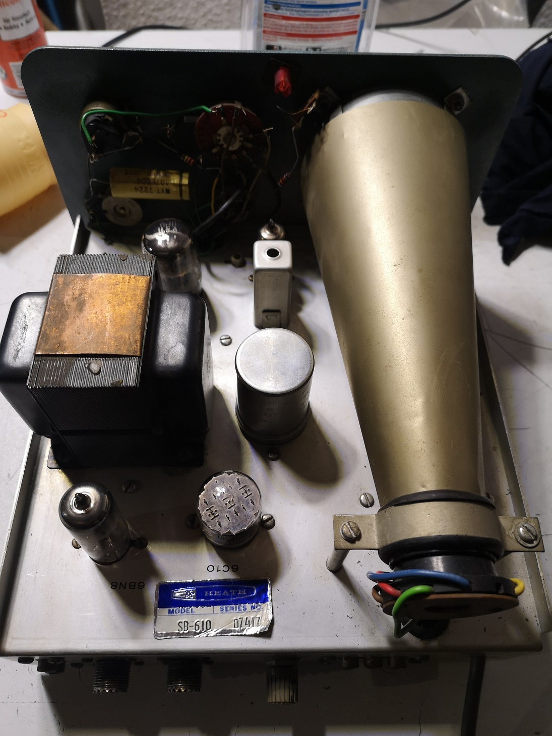SB-610 ist jetzt in Endmontage, Zusammenbau. Nicht gewechselt wurden die HV Siebkondensatoren, sollte das nötig werden wirds noch gemacht. Das Gerät bekam alle Elkos neu.