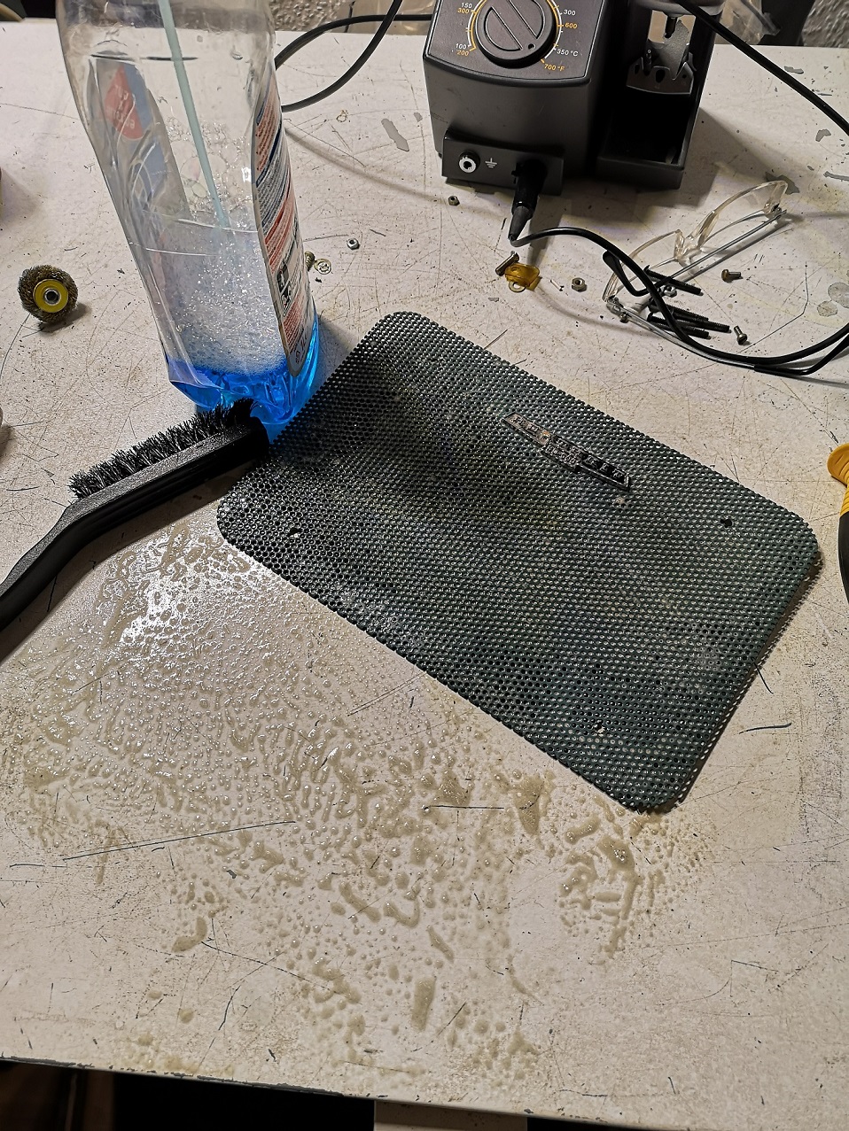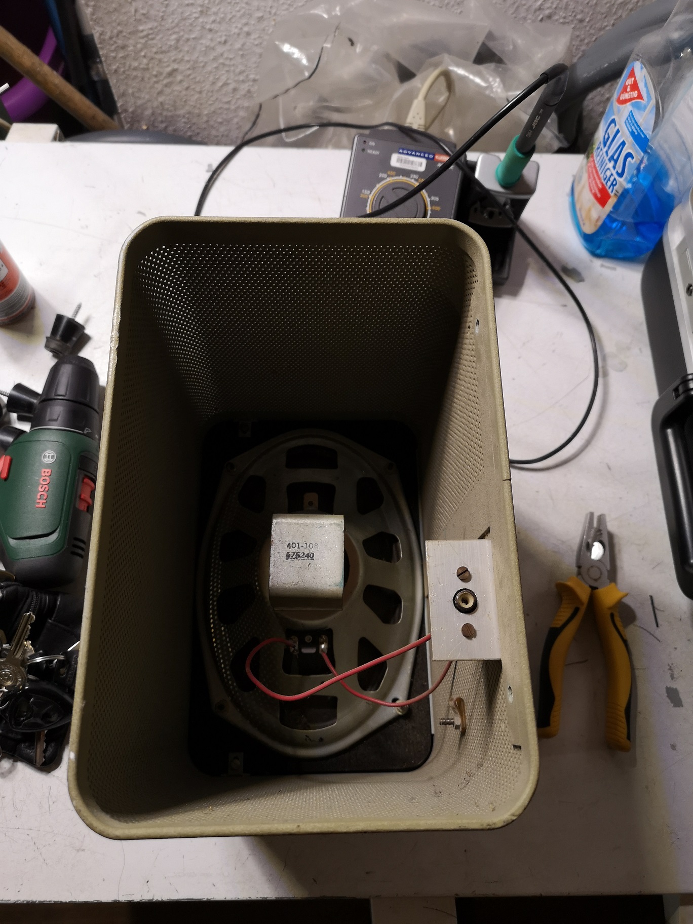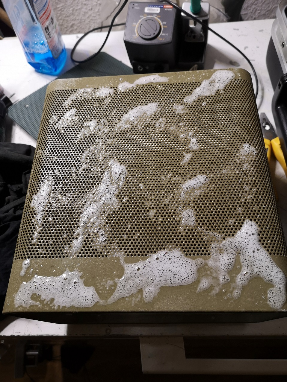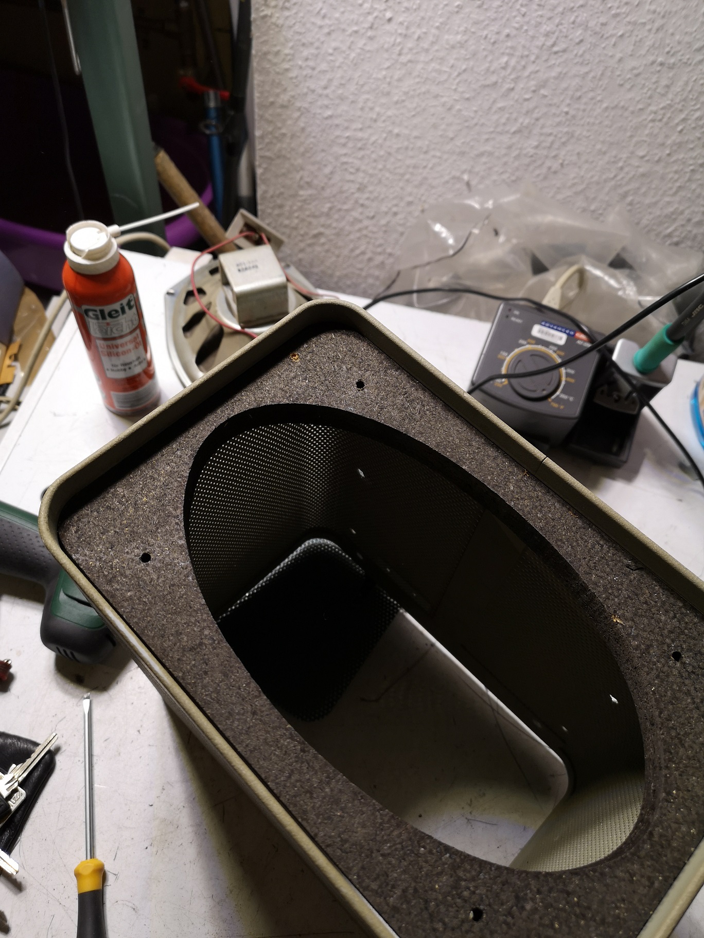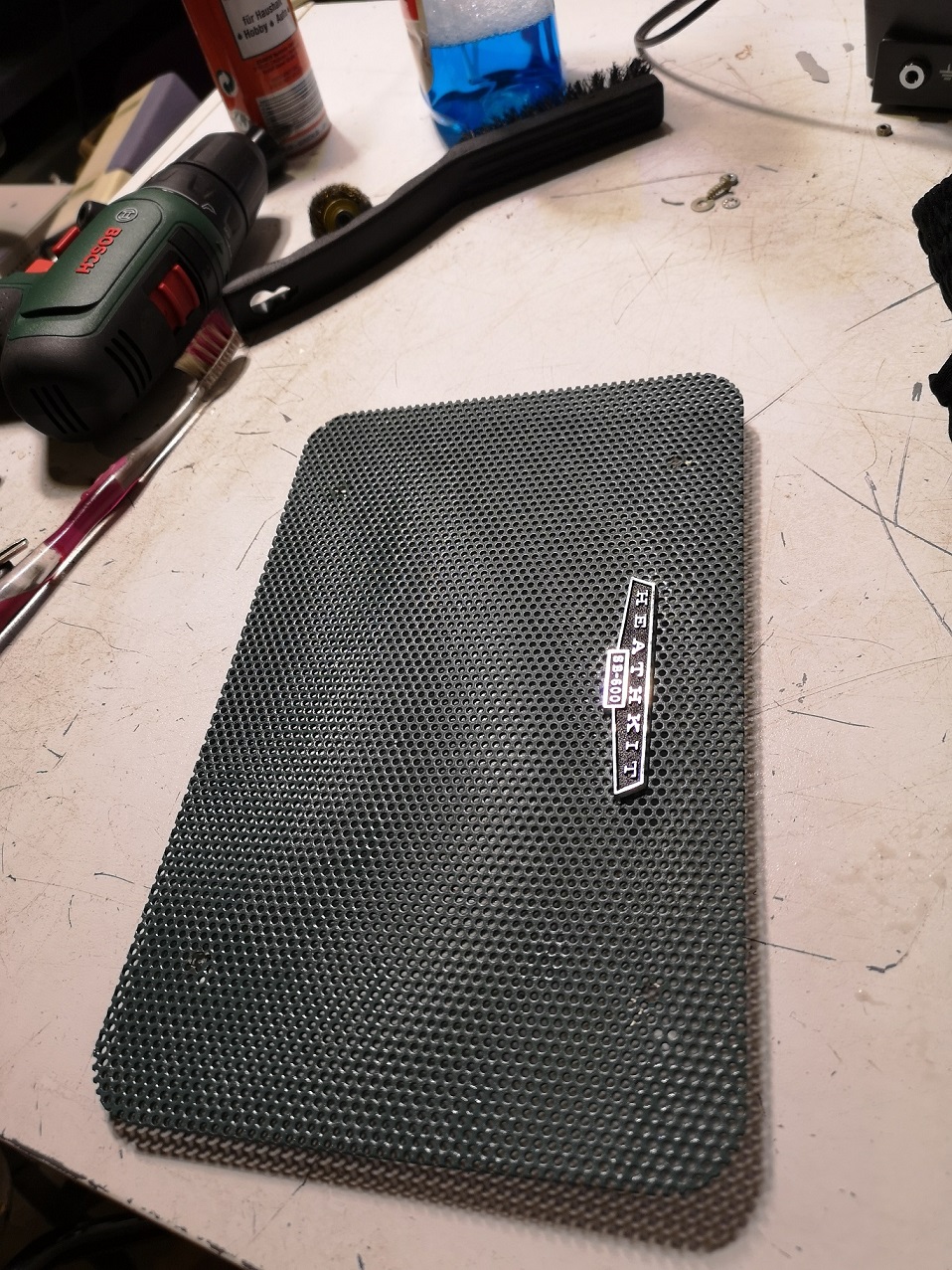 Die Gehäuseschale und das Frontblech waren zusammen mit der vom SB-610 nach dem Bürsten mit Glasreiniger in die Spülmaschine gewandert, es sieht nun anders aus.