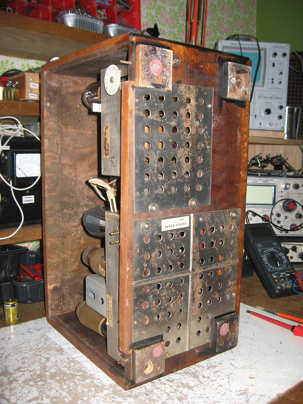 Hätte jemand also das Gerät nach der Reinigung der korridierten Kontakte eingeschaltet, würde das Radio nur sehr laut brummen.