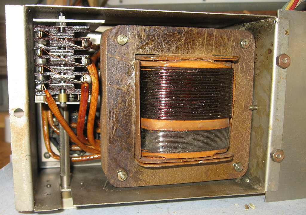 Im Gerät sind noch zwei Niedervolt-Elkos und mindestens ein Koppelkondensator, die ich ersetzen muss, bevor ich das Radio über eine vorgeschaltete 60-Watt-Glühlampe einschalte. Der Netztrafo hat bis jetzt einen unverdächtigen Eindruck gemacht. Ich bin also verhalten optimistisch.