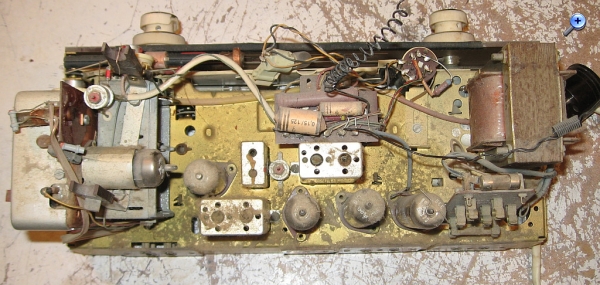 Viel Küchenddreck, Fett und Staub musste entfernt werden, wozu Wattestäbchen, Zahnbürsten, Glasreiniger und Bremsenreiniger zum Einsatz kam. Das Kunststoffgehäuse wurde mit Autolackreiniger poliert. Leider hat es oben einen Riss. Die Ferrit-Antenne war aus der Halterung gefallen und einige Drähte dieser Antenne waren abgerissen. Der Drehko saß fest und konnte mit Bremsenreiniger, Kriechöl und etwas Wärme von einem Lötkolben wieder beweglich gemacht werden. Mal sehen, was mich noch erwartet.