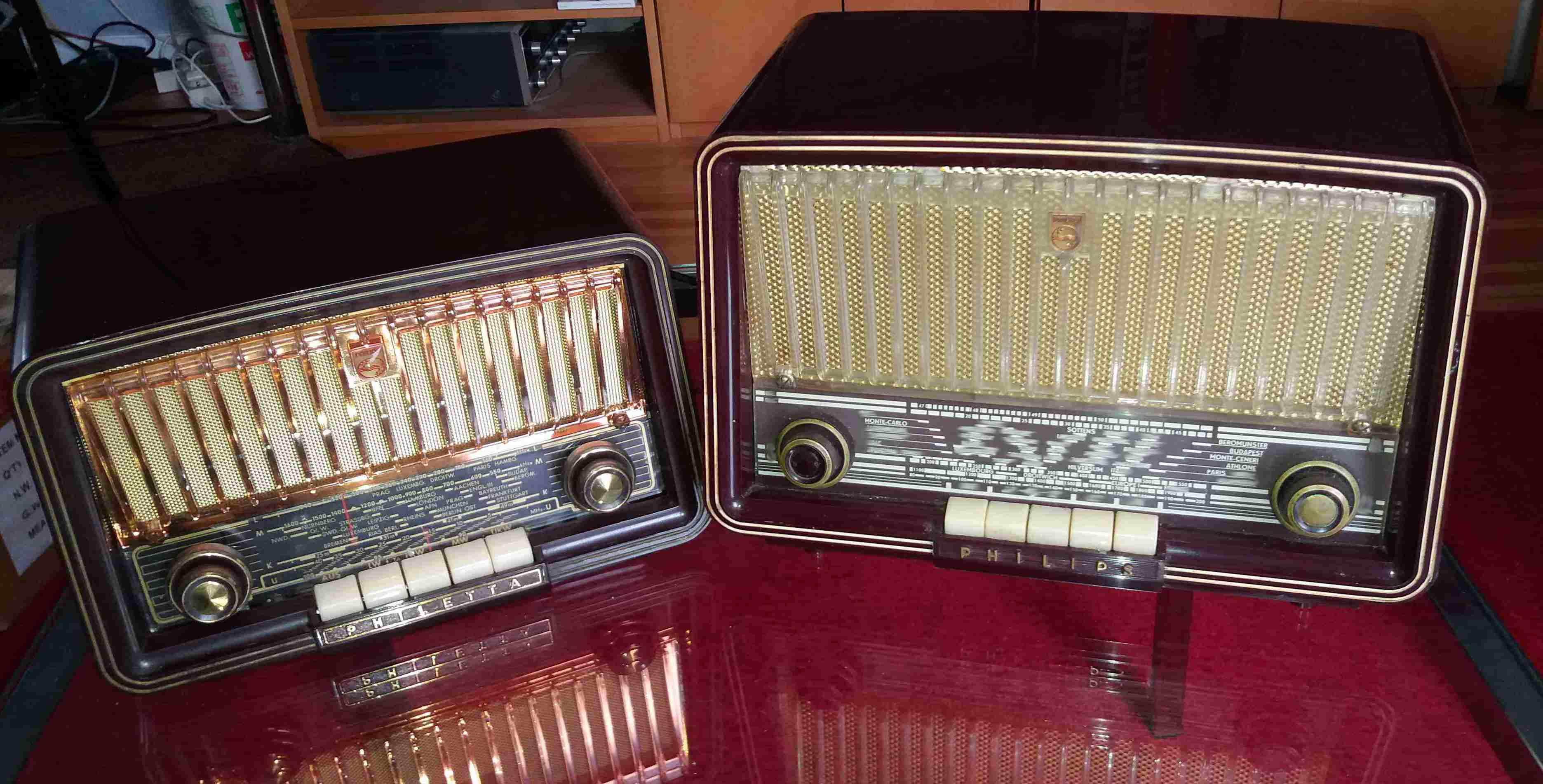 Ja, es ist ein französisches Philips-Radio B3F60A. Es heißt NICHT Philetta. Es verwendet von der deutschen Philetta das Tastenaggregat, sonst nichts. Es hat ein völlig anderes Chassis, kein UKW, sondern L, M, K(19-41m) und K(49m). Es hat die Röhren UCH81, UBF80, UCL82 und UY85 und -- wer mag das bei dem Röhrensatz vermuten -- einen Netztrafo mit Netztrennung. Der Trafo hat EINE Sekundärwicklung, ca 170 Volt, die für die Anodenspannung und die Röhrenheizung in Reihe mit 2 Lämpchen, dazwischen ein Abgriff, zuständig ist. Ein weiterer Unterschied: Im Gegensatz zur zeitgenössischen Philetta hat dieses Gerät kein Pressstoff- sondern ein Thermoplast-Gehäuse. Die Verarbeitung entspricht nicht ganz dem Niveau deutscher Philipsgeräte, z.B. ist der Netztrafo mir Schränklappen befestigt.