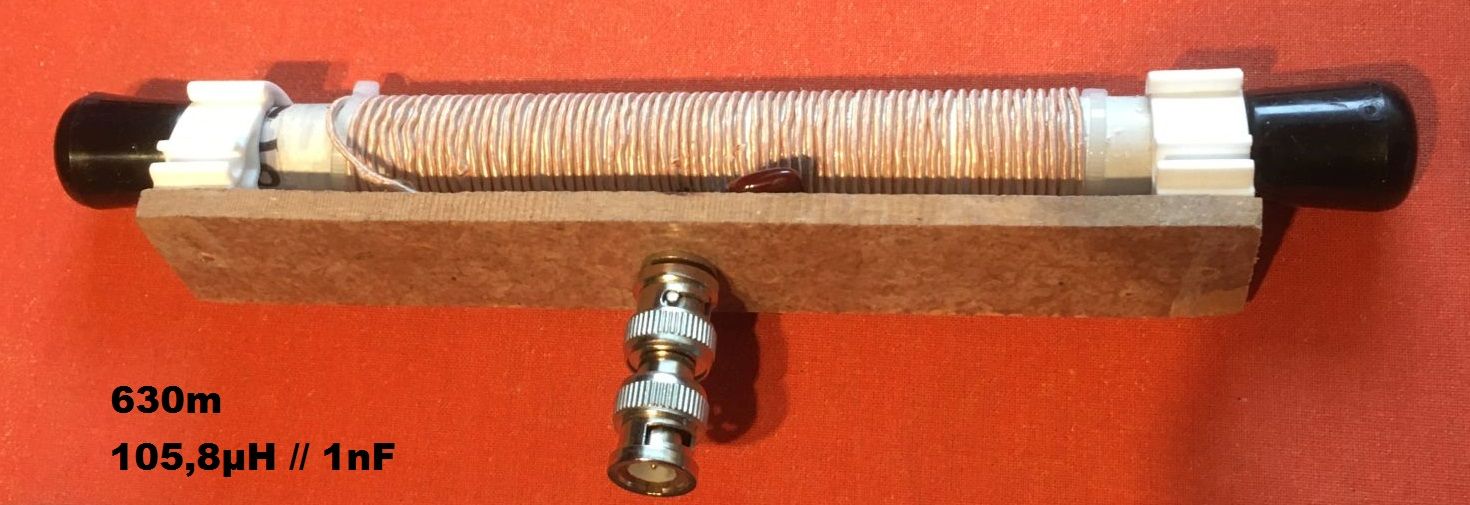 Test mit einer resonanten Ferritantenne für 630m: Grundrauschen 15dB (indoor) mit Ferrit, 10dB mit Teleskop (AM1)