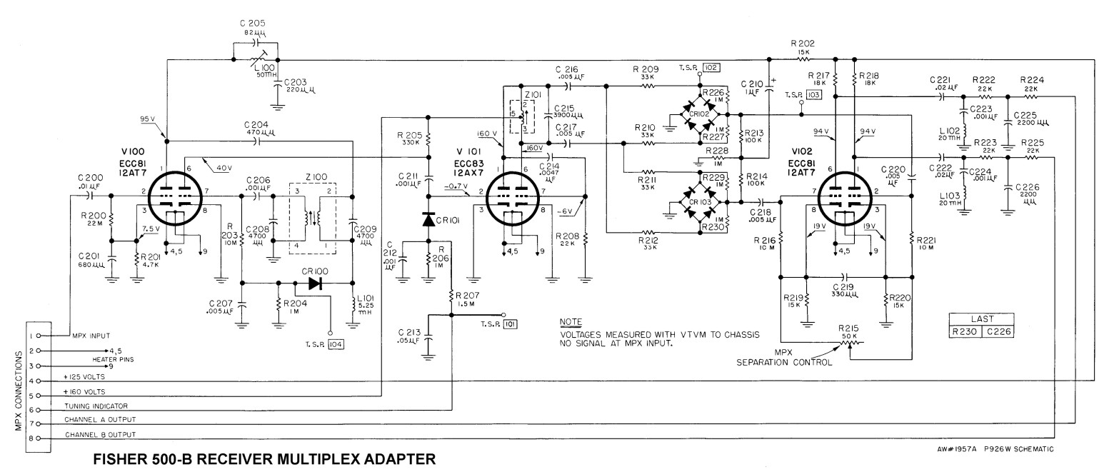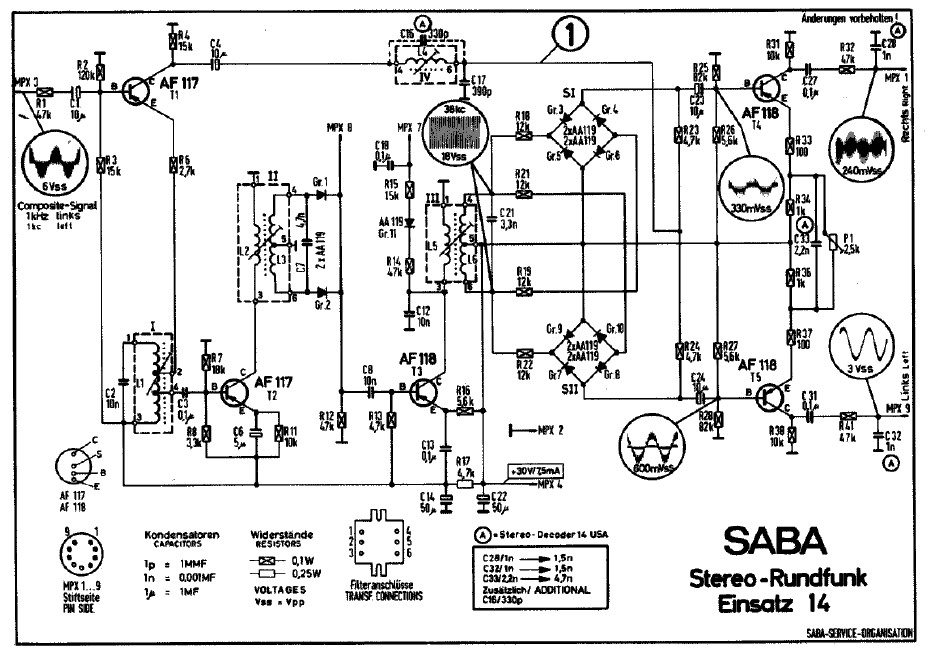 Als Ergänzung noch die Schaltbilder von den Stereo-Dekodern mit ähnlichem Funktionsprinzip von Fisher noch mit Röhren bestückt und Saba schon transistorisiert