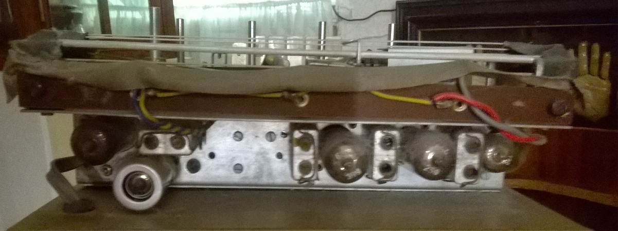 heute habe ich endlich Zeit gefunden, auch einmal in das Gerät zu sehen... schon der Ausbau eine Katastrophe. Mit 5mm mehr Platz seitlich wäre das alles wesentlich einfacher. Es gibt in der BDA sogar Reparaturhinweise, ohne die gar nichts geht. Also Hartfaserplatte unter dem Plattenspieler ab und versucht die Kabel zum VV zu trennen. Dafür habe ich zu große Hände, in den Schlitz für die Plattenablage kommt man nicht rein um den geschraubten 5poligen Dinstecker zu lösen. Also doch Plattenspieler raus und das geht nur mit Demontage der Halterung beim Thorens TD134 ... wie bekomme ich das wohl blind wieder angebaut?. Trotzdem geht der VV mit Tuner nicht nach oben heraus, das Stromkabel mit seitlicher Durchführung zum Plattenspielerchassis müsste dann neben dem Blechwinkel aus dem Holzrahmen, wieder fehlen 5 mm, also auch den Stecker demontieren und Kabel durch die Gummitülle nach innen schieben... und wie umgekehrt? Massenweise Staub ~1cm dick im Tuner, den hätte ich abgefackelt, wenn ich den ohe Reinigung betrieben hätte. Nun zum Ergebnis, der Steuerverstärker ist inklusiv Netzteil von Klein & Hummel, Typ St-S3. Darauf wurde eine UKW-Empfangseinheit von Nogoton Typ UK 12542 montiert. Nogoton kenne ich nur aus Bausteinen für Studiotechnik. Zur Qualität kann ich daher nichts sagen.