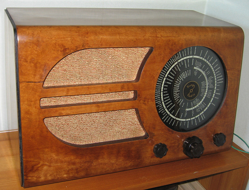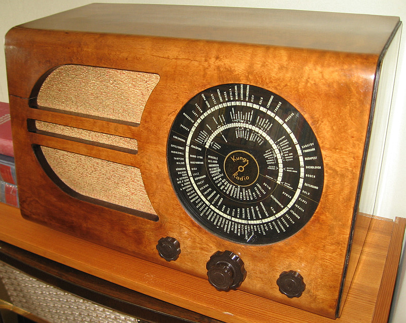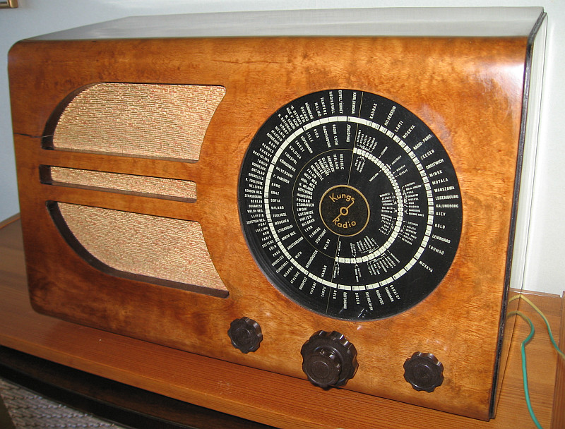 Entfernung über 1000 km, 27.4.2014, 20:00 MESZ, Antenne: 30 m langer Draht, Empfänger: Kungs Radio 319V Baujahr 1938/39. Die Menschen in Schweden waren mit solchen Radios also ganz gut informiert, da sie alleine schon über die Mittelwelle aus vielen Ländern Europas Informationen beziehen konnten. Über Kurzwelle waren die Möglichkeiten natürlich noch besser. Diese auf Grund ihrer technischen Einfachheit genialen Informationskanäle sollen nun augegeben werden.