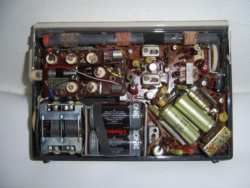Du hast Recht, es ist der Luxus-Boy E. Warum hat man nur bei diesen Geräten damals nicht den Namen am, oder im Gehäuse angebracht? Ansonsten hat es ja einen interessanten Aufbau. Die Transistoren sind teilweise gesockelt und die Idee, die im Deckel befindliche Antenne mit der Befestigungsschraube des Deckels zu vereinen ist genial. Auch der Anschluss der externen Antenne über drehbare Klemmhalter finde ich nicht schlecht. Meine einzige Sorge gilt dem Seilzug. Er 'klemmt' etwas und ich hoffe nicht, dass er mal reisst (wie geschehen bei meinem Grundig Concert Boy 208). Schon während der Lehrzeit war das für mich die schlimmste Arbeit. Trotzdem, es ist ein schönes kleines Gerät und hat einen sehr guten Empfang.