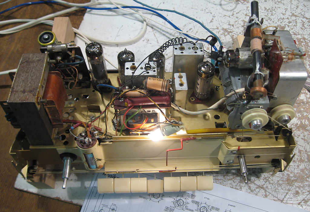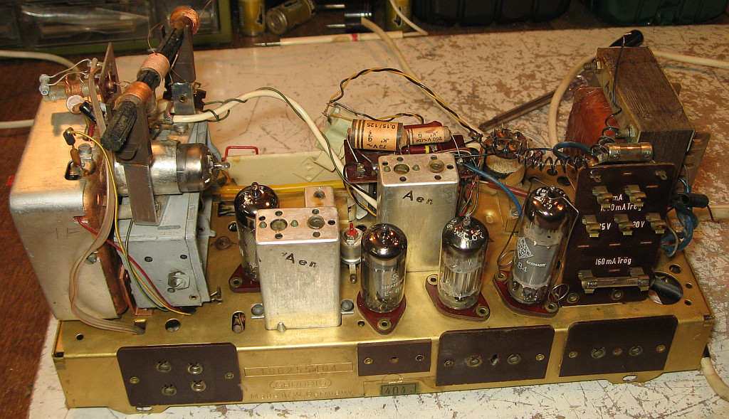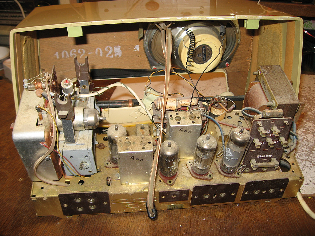 Bemerkenswert ist, dass im Radio Röhren von Siemens, Valvo, Telefunken und Lorenz eingesetzt sind. Das Radio hatte also schon einige Mal die Werkstatt aufgesucht.