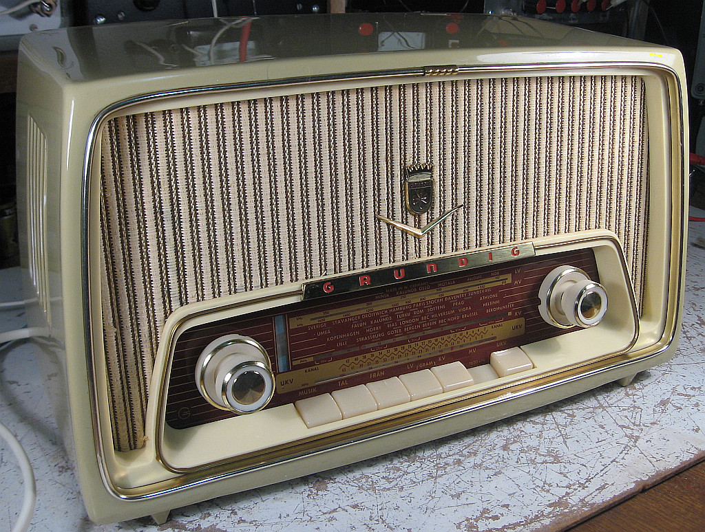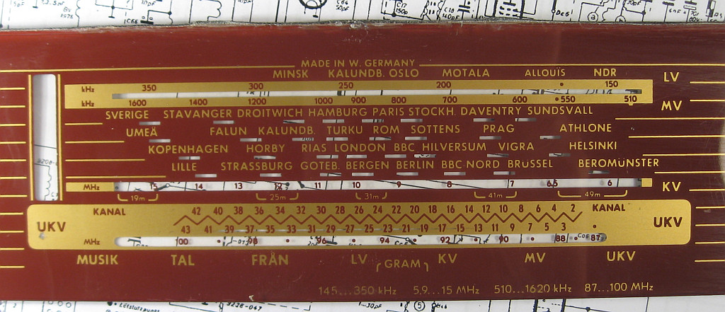 Mich würden mal die damaligen Verkaufsargumente interessieren, um sich von der Philetta abzuheben. Der Grundig hatte ein magisches Auge und die praktische Bandumschaltung mit der Kupplung zwischen UKW und den AM-Bändern. Dann waren noch solche Spielereien wie eine Tonblende für Musik und Sprache per Tastendruck wählbar. Schließlich wurde für einen Netztrafo investiert, den meine gleichaltrige Philetta jedenfalls nicht hat. Auf dem Skalenglas steht "MADE IN W.GERMANY" in großen Lettern. Technik aus Westdeutschland muss wohl auch ein Verkaufsargument gewesen sein. Das ist auch heute noch so in Schweden, wobei natürlich nicht zwischen west- oder ostdeutschen Produkten unterschieden wird.